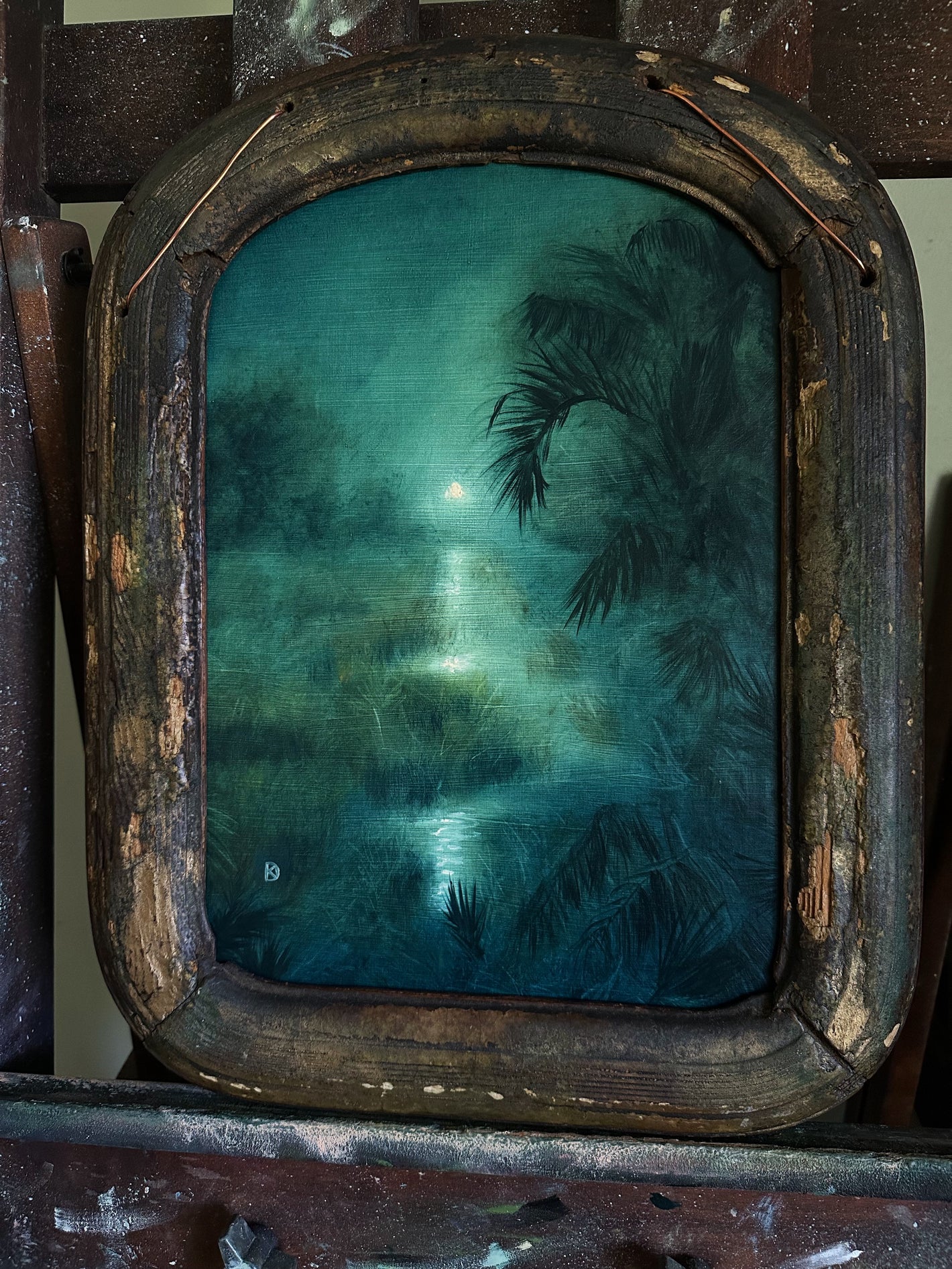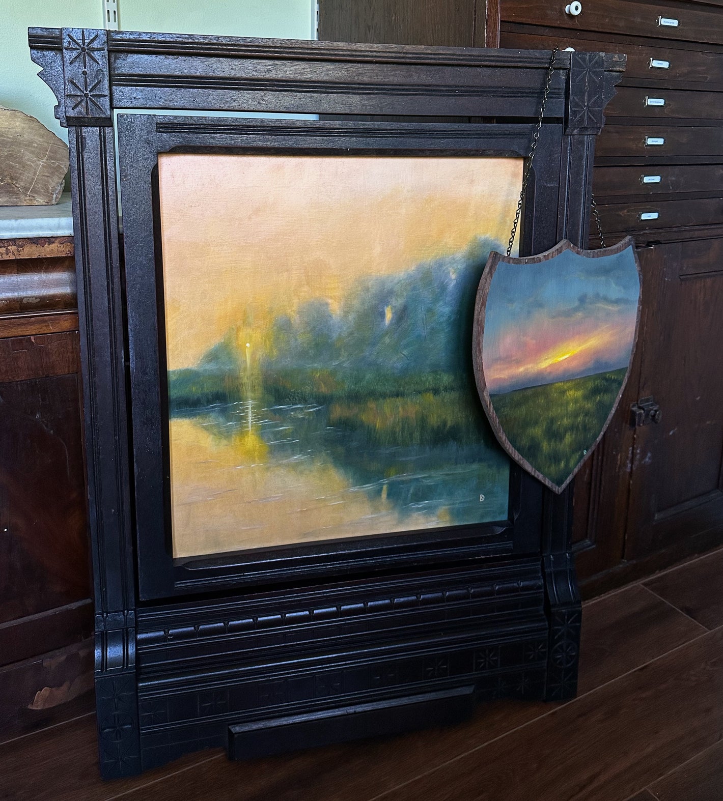 9 new works painted on architectural salvage, antique pieces, ancient-style plaster and in mended antique frames will be available.