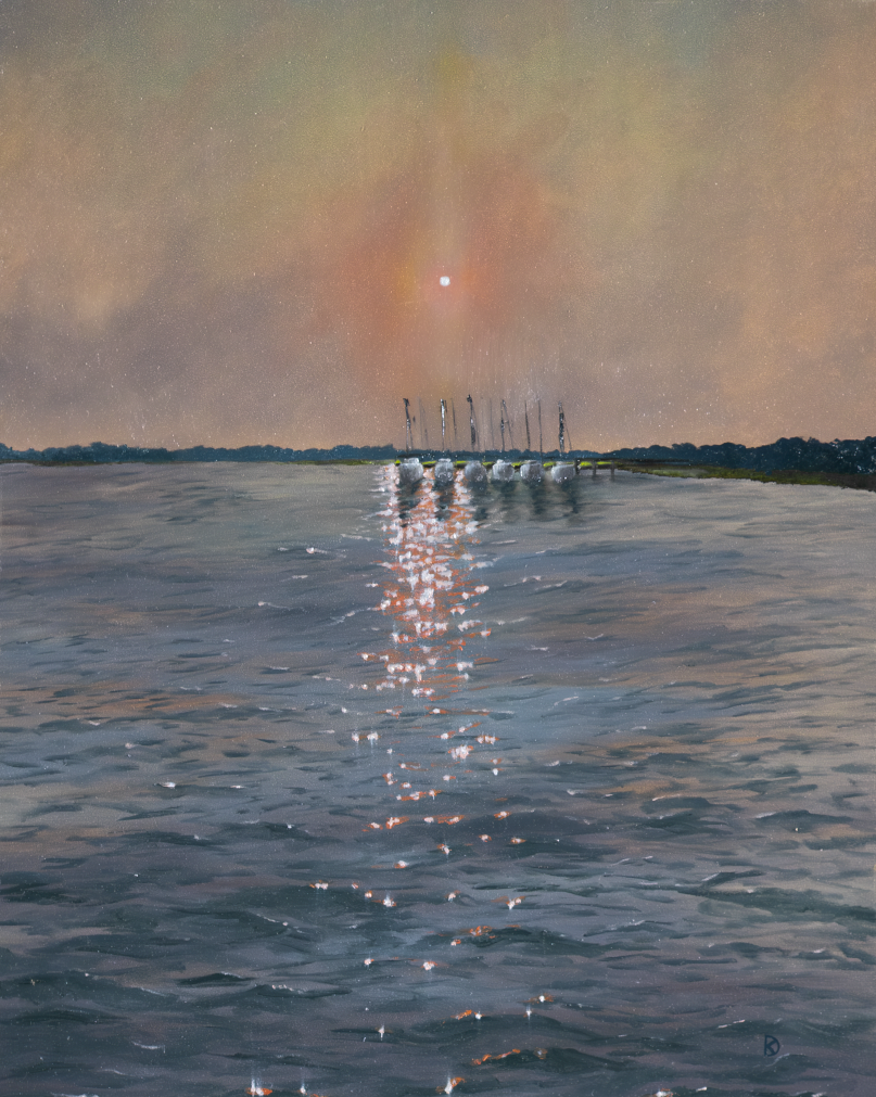 This hazy sun scene is one we recently witnessed here in Beaufort. I loved how different the soft, filtered light made the world, and how the pink sun seemed to tinge everything below it a bit pink unlike it ever has before. It made me think of how often we can see the same scene again and again, but it takes an perspective shift to tinge our ideas of what we think we know. I hope this painting is a reminder to stay open to new ideas, ideals and always remain empathetic to not only what you've experienced, but even situations you haven't. Empathy will save the world, if only we allow our perspectives to see beyond what's in front of us, and open ourselves up to the peripheral.