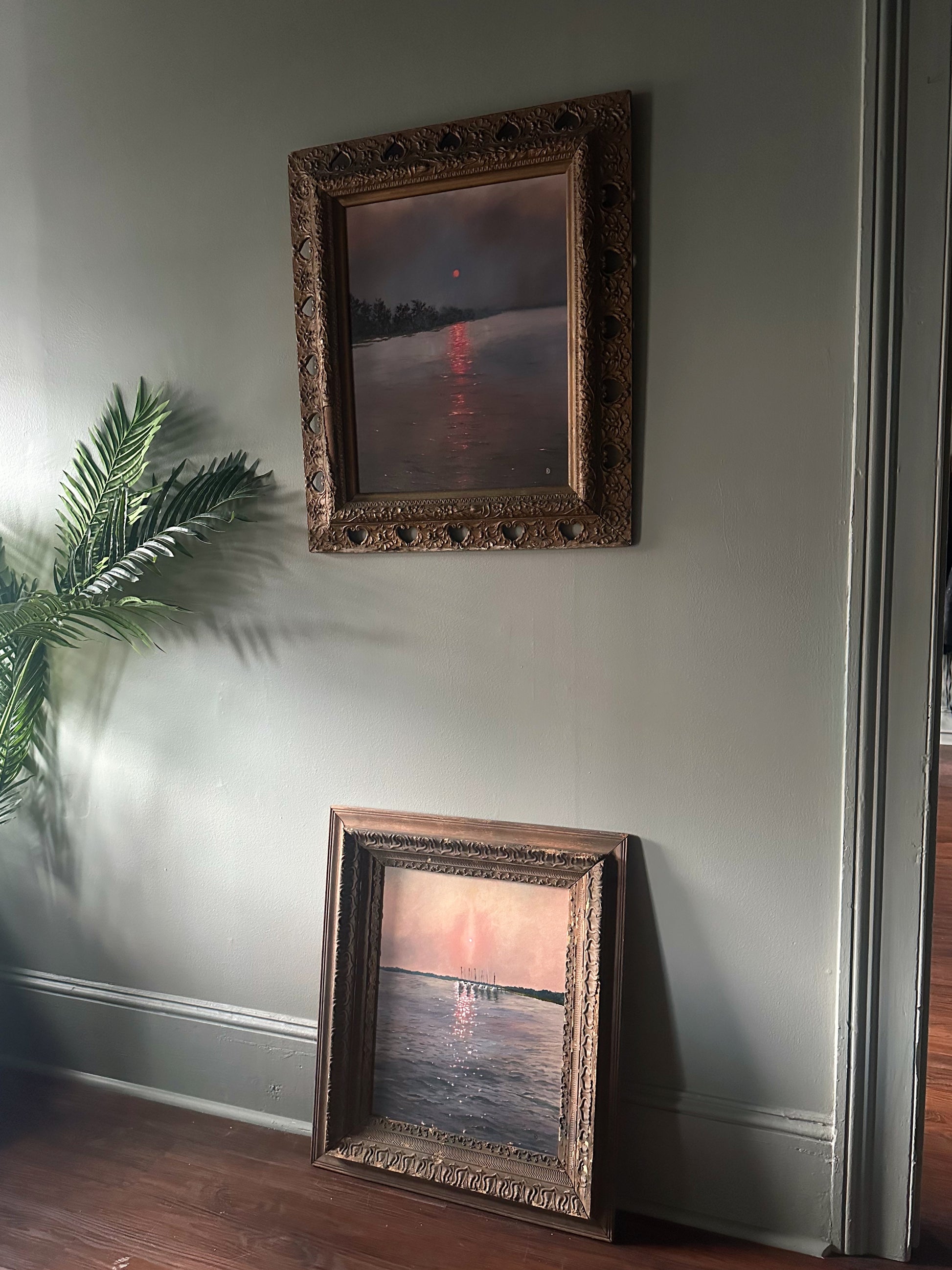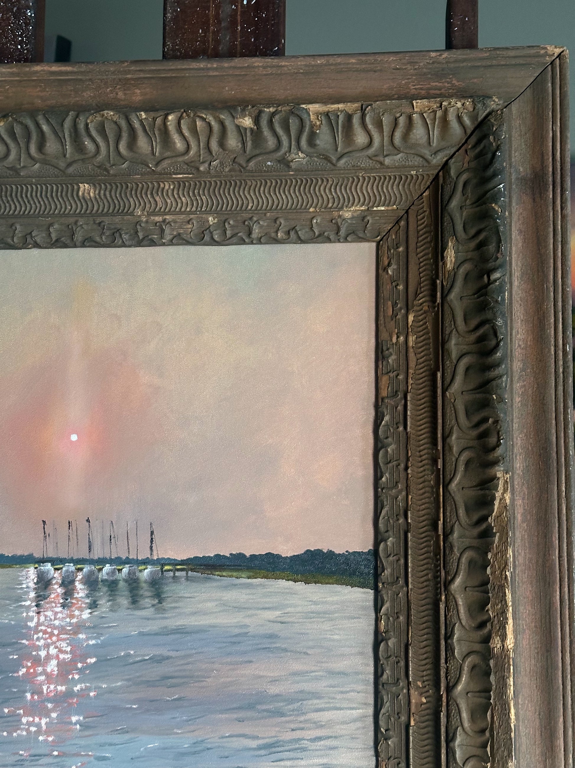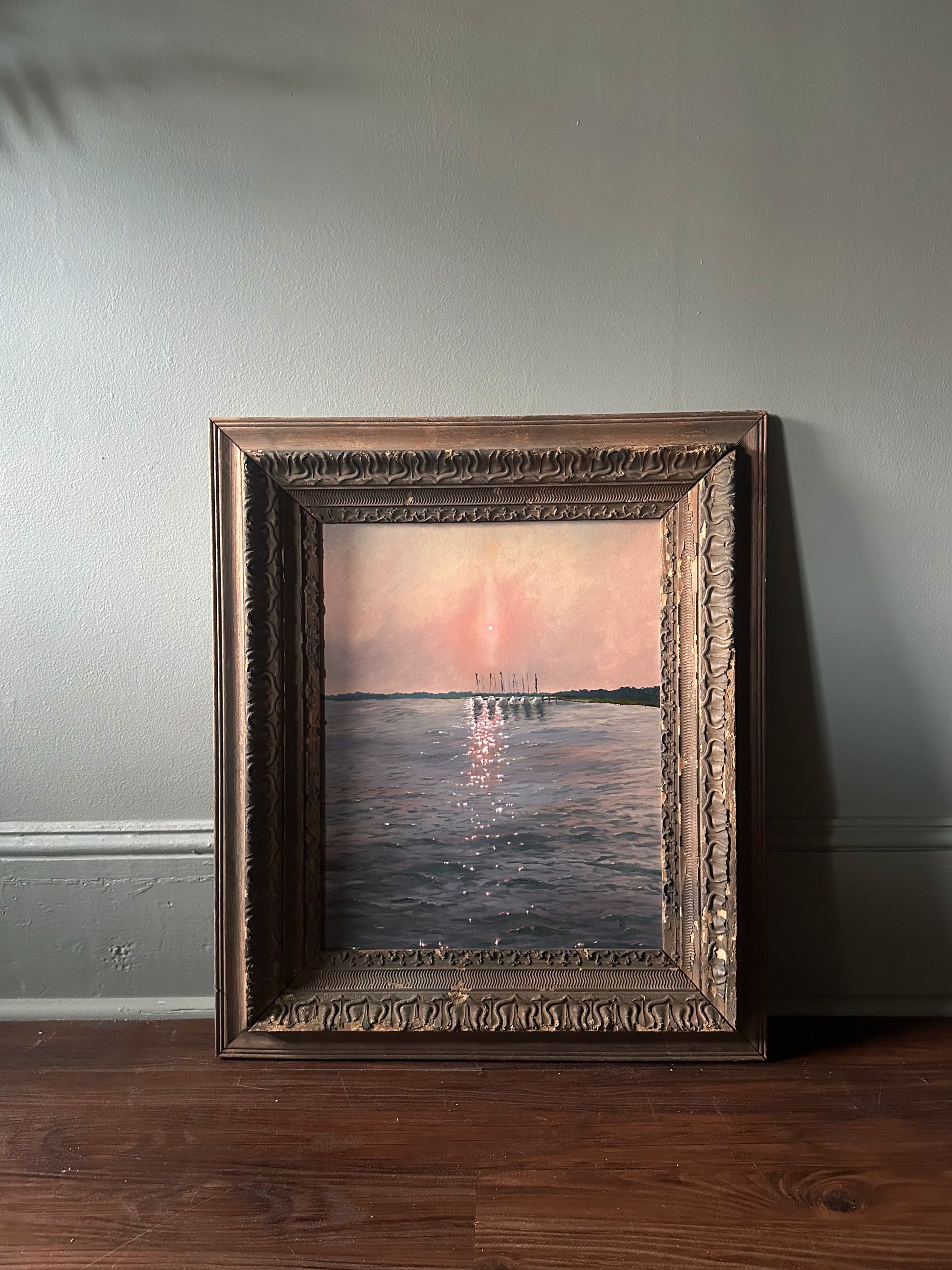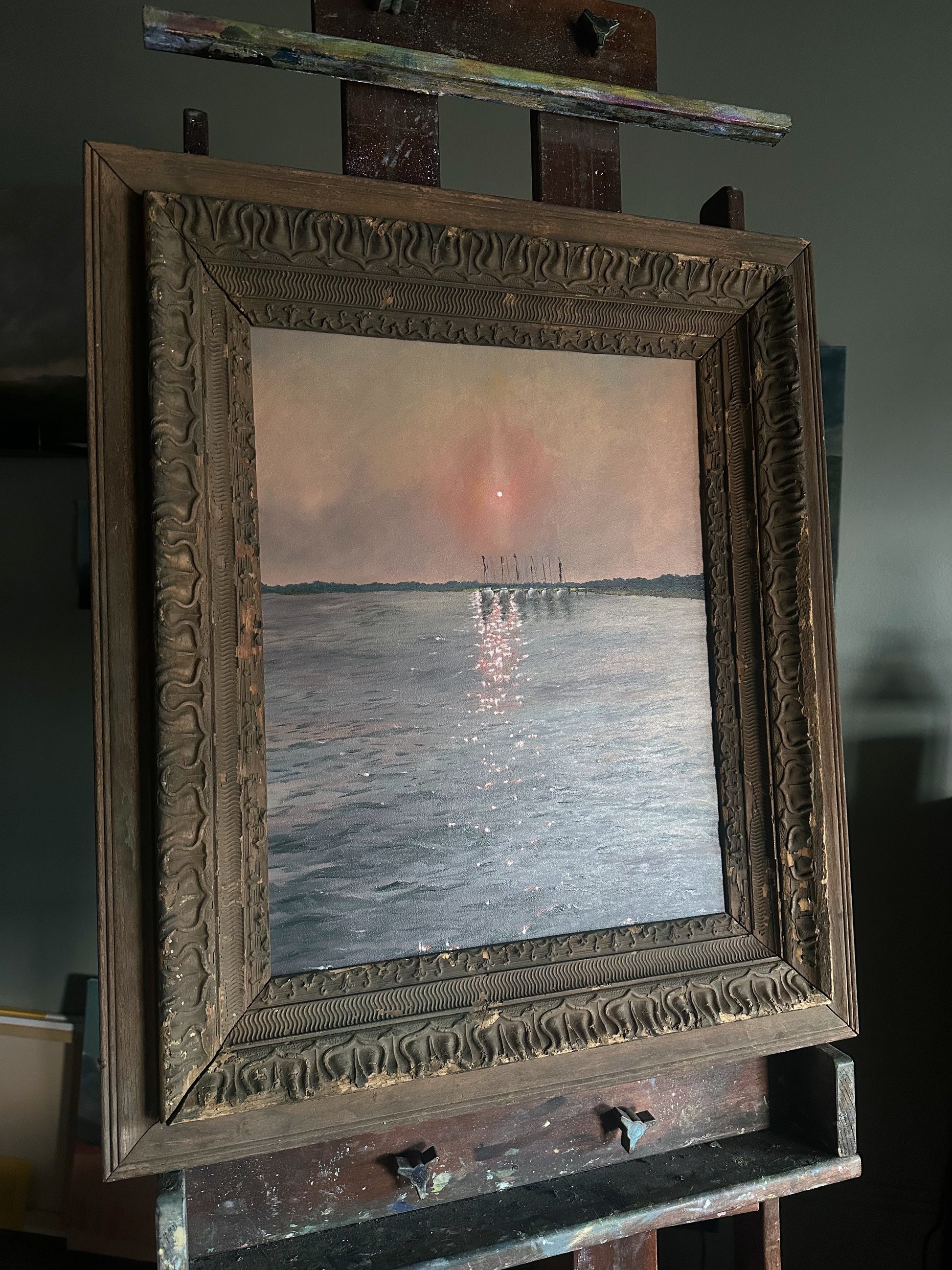 This hazy sun scene is one we recently witnessed here in Beaufort. I loved how different the soft, filtered light made the world, and how the pink sun seemed to tinge everything below it a bit pink unlike it ever has before. It made me think of how often we can see the same scene again and again, but it takes an perspective shift to tinge our ideas of what we think we know. I hope this painting is a reminder to stay open to new ideas, ideals and always remain empathetic to not only what you've experienced, but even situations you haven't. Empathy will save the world, if only we allow our perspectives to see beyond what's in front of us, and open ourselves up to the peripheral.