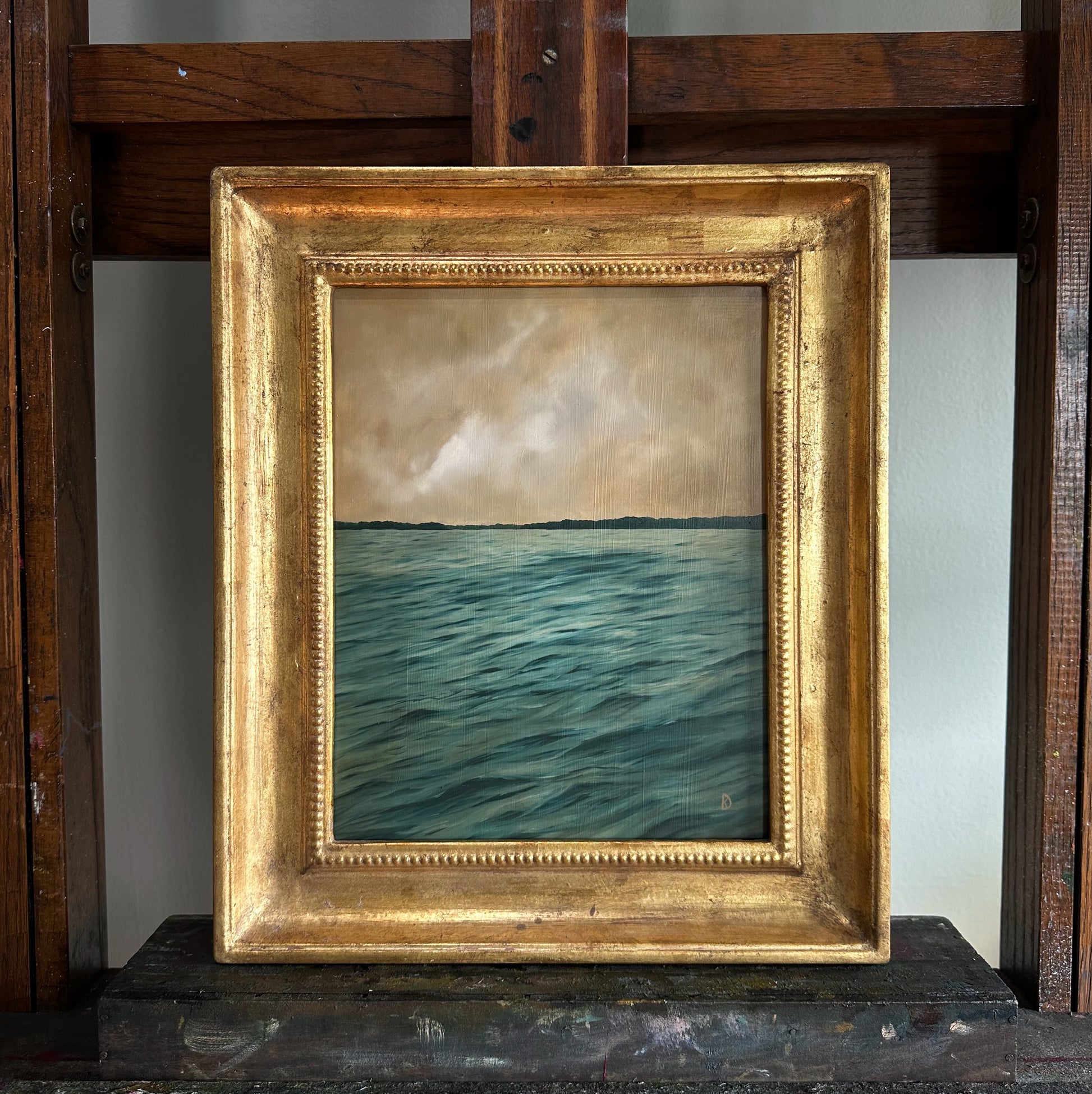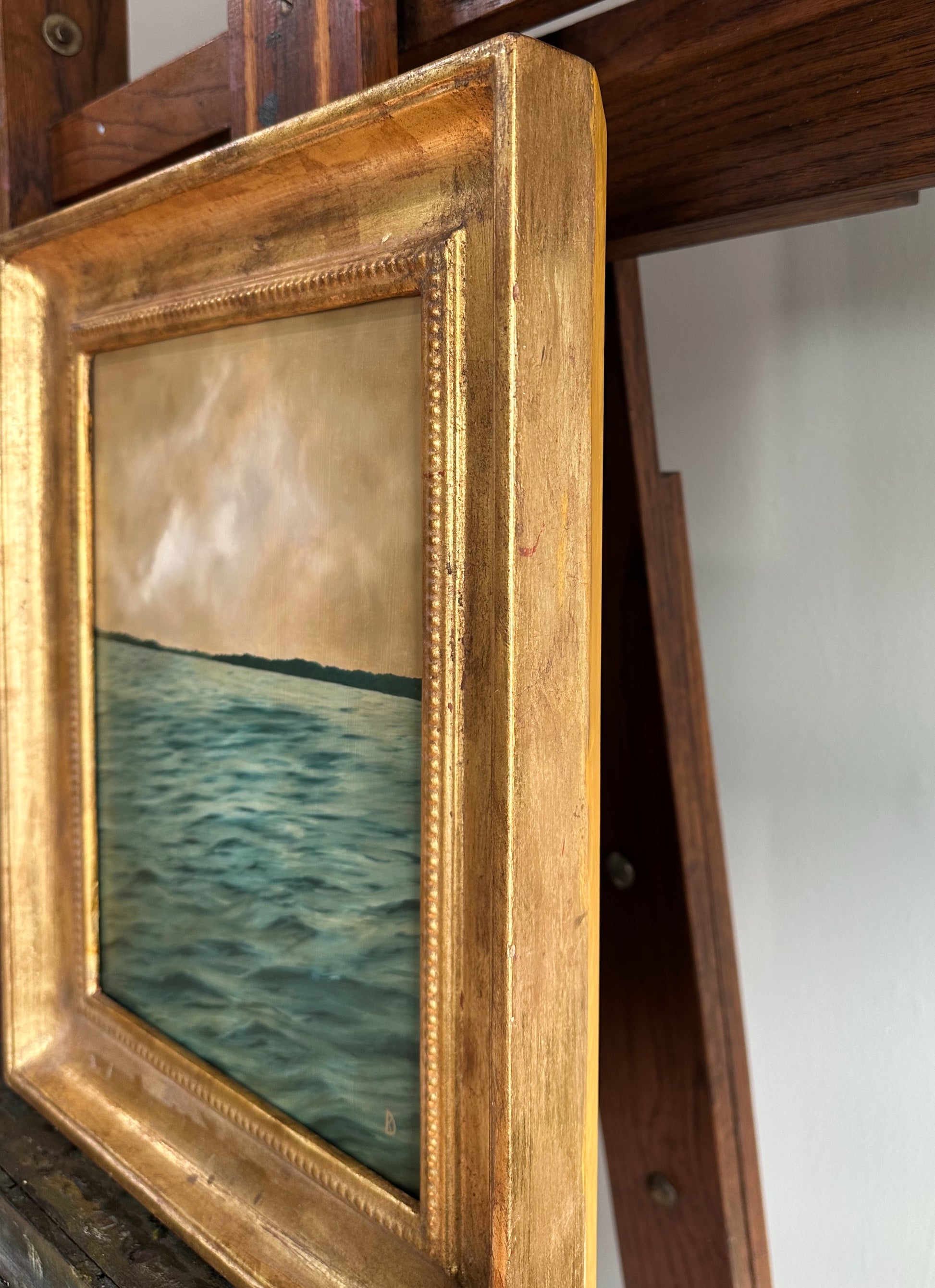 In September, I was fortunate to visit Italy to teach oil painting. I stayed in Venice and fell in love with that gorgeous place. More so, I fell in love with the many generational artisans and crafters. I stumbled into a tiny little frame shop and quickly made friends with the kind owner and maker, Alberto. He has made frames his whole life, and took over the family business from his father, who had taken it over from his grandfather. While Alberto was low in stock, he graciously allowed me to pick out a stack of unfinished frames so that he could finish them to my specifications that would best suit my art. This experience felt so full-circle because I am Italian, and I grew up in poverty; I certainly never thought I'd get to visit the country my great-grandparents came from. To have these special frames as part of this collection of paintings just felt 'right.'
