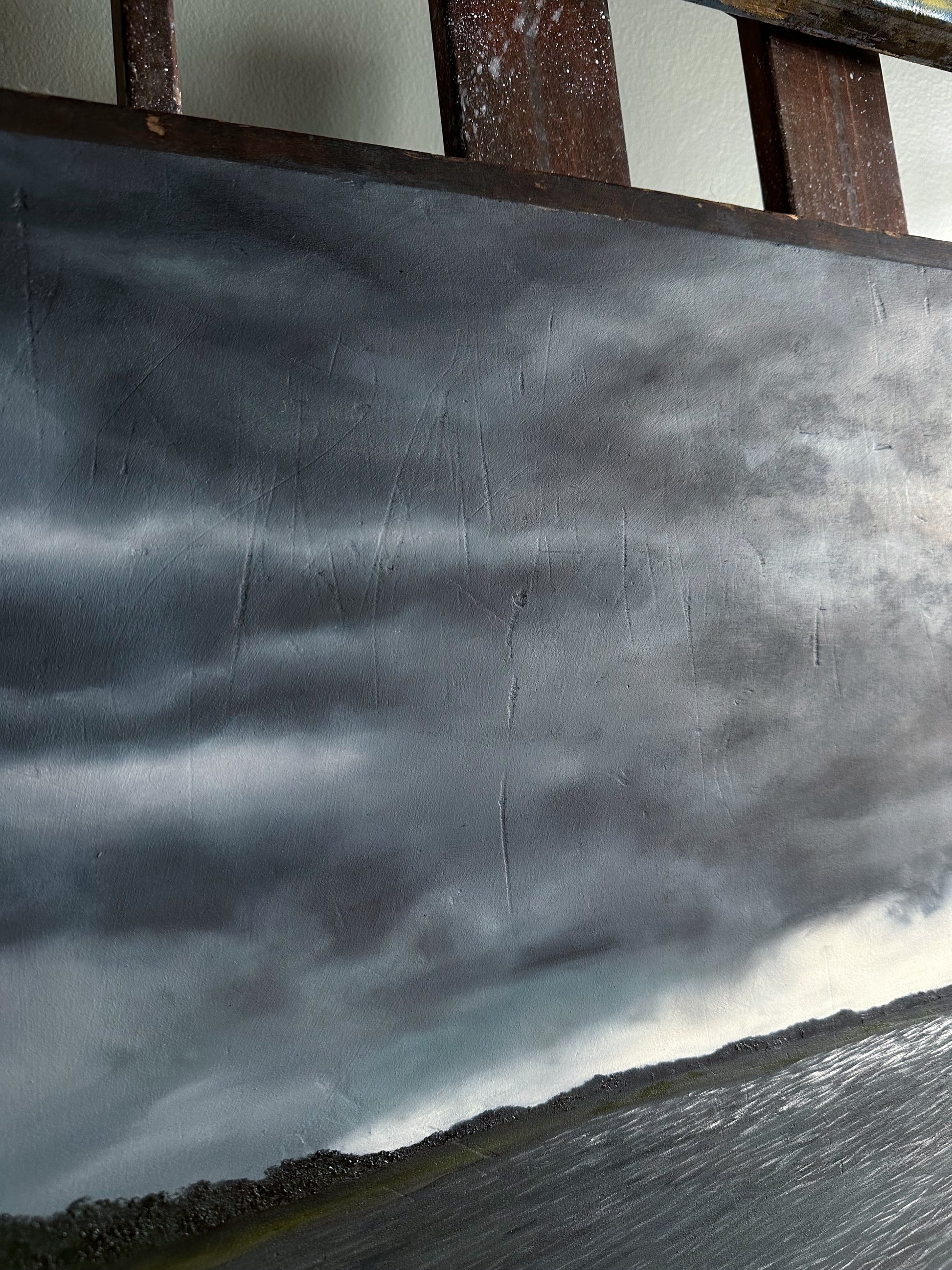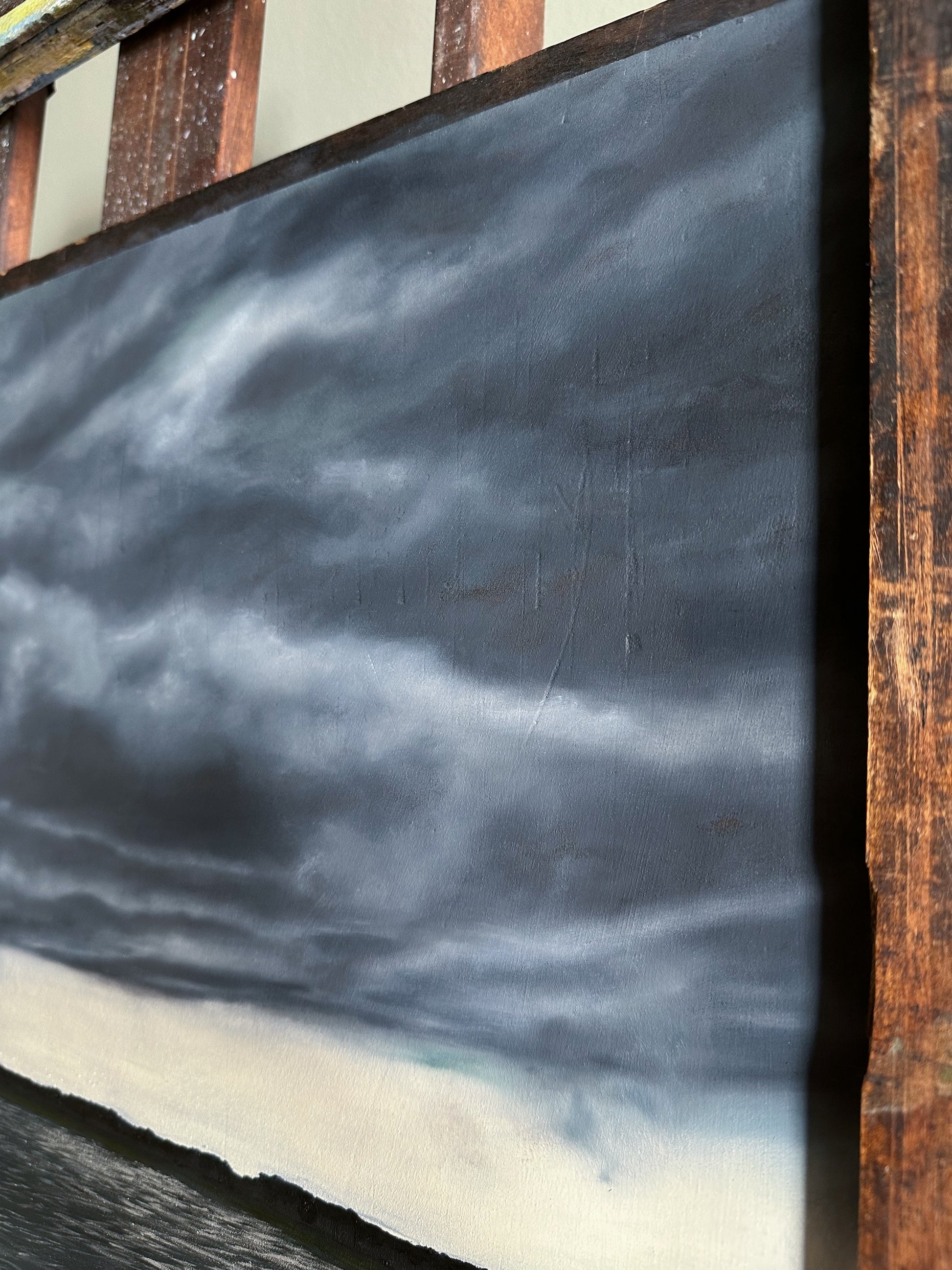 “Exhale” Oil Painting on Antique French Printers Tray - 32.3” x 20.5”