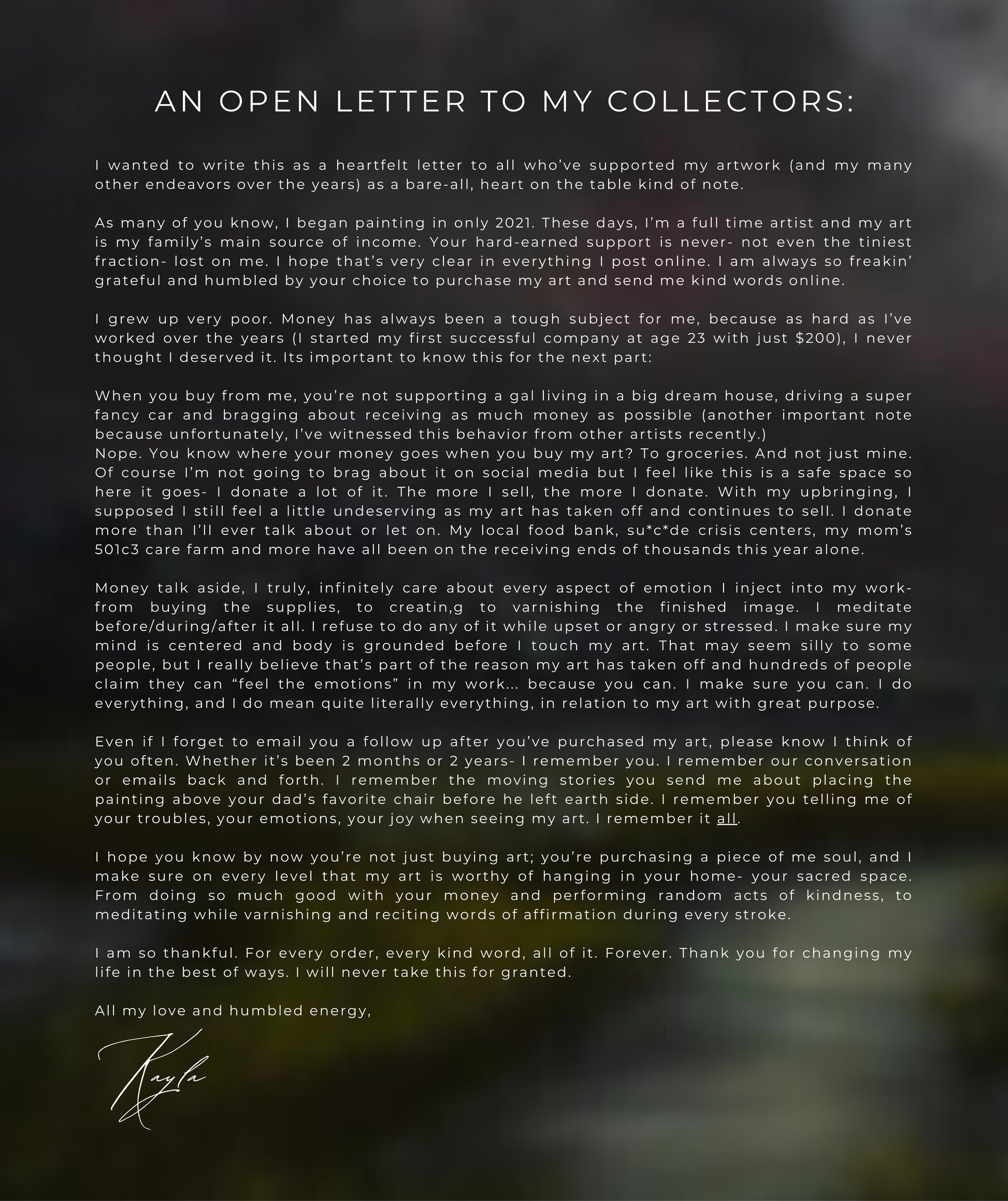 All originals and prints come with the poem they’re named/painted from, in case you’d like to frame and hang it next to the art.