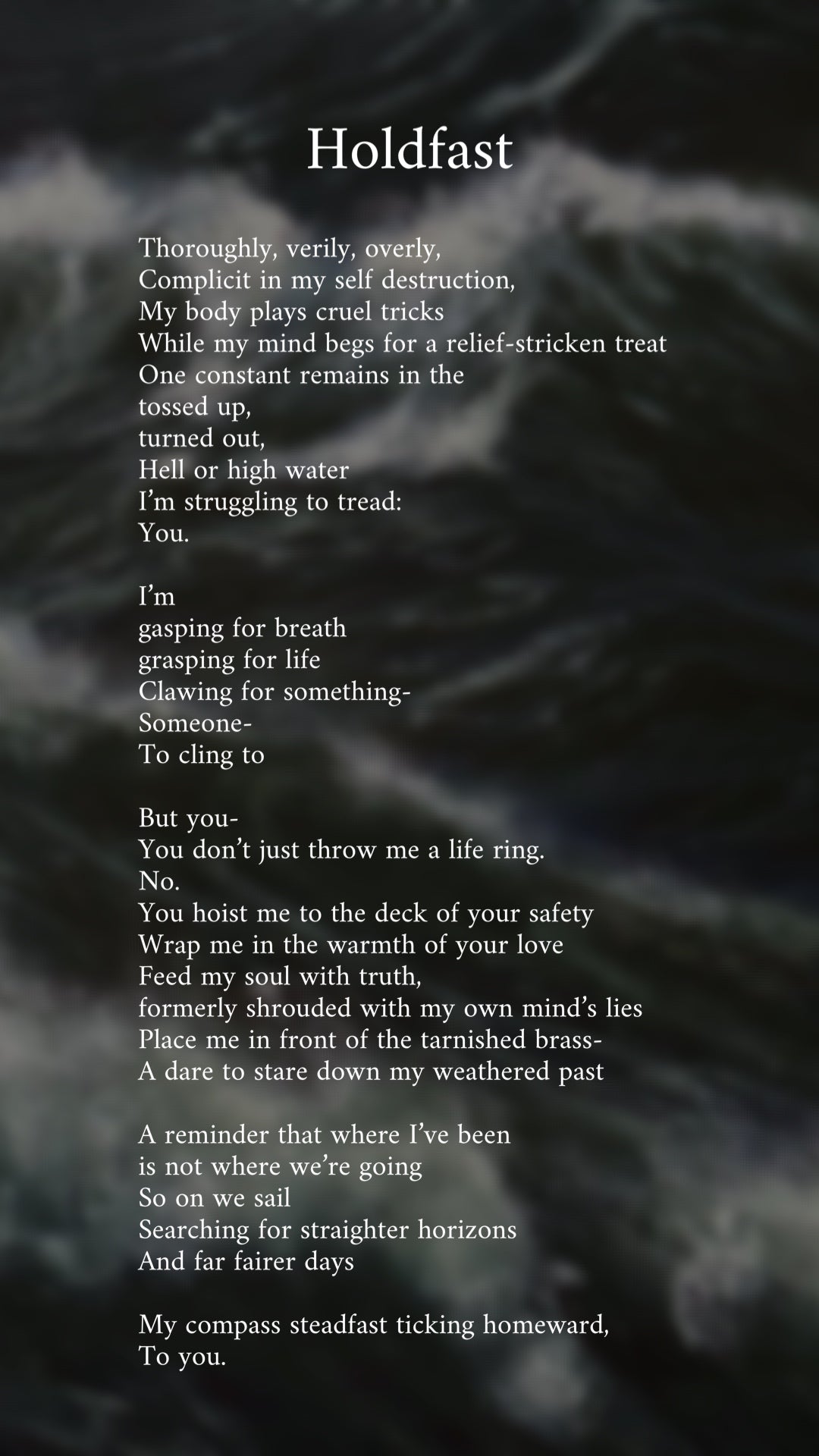 This is an extremely special painting I created to represent a person, or being, in one's life who keeps them safe from themselves. Whether this is a soulmate, a friend or God, this poem fits it all. Truly one of my favorite poems I've ever written.