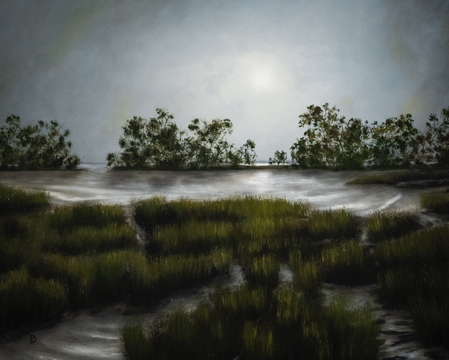 A twilight scene oil painting of blues, grays, browns and greens. Named, and painted, from an excerpt by Brianna Wiest, and will come with the poem.