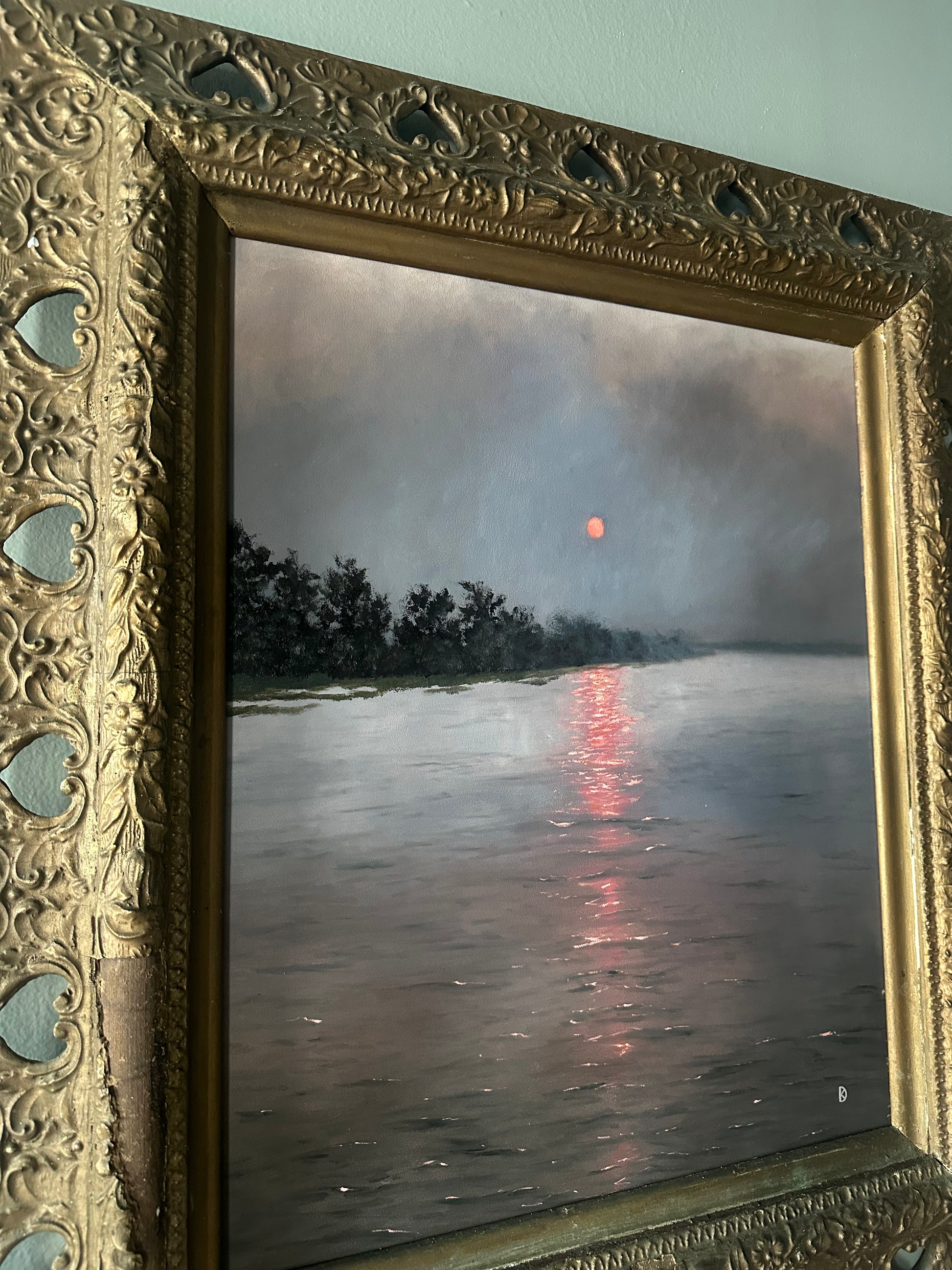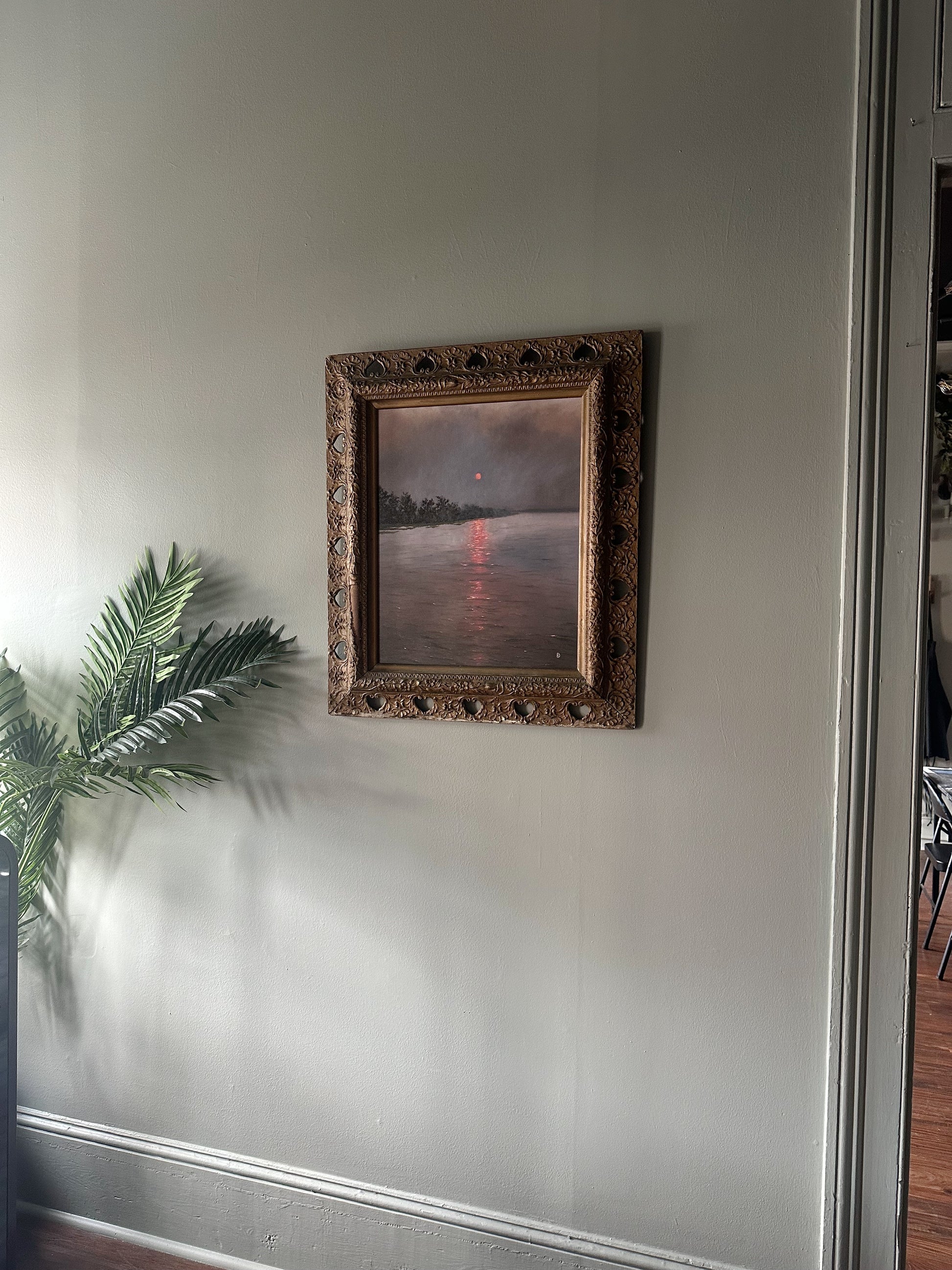 This hazy sun scene is one we recently witnessed here in Beaufort. I loved how different the soft, filtered light made the world, and how the pink sun seemed to tinge everything below it a bit pink unlike it ever has before. It made me think of how often we can see the same scene again and again, but it takes an perspective shift to tinge our ideas of what we think we know. I hope this painting is a reminder to stay open to new ideas, ideals and always remain empathetic to not only what you've experienced, but even situations you haven't. Empathy will save the world, if only we allow our perspectives to see beyond what's in front of us, and open ourselves up to the peripheral.