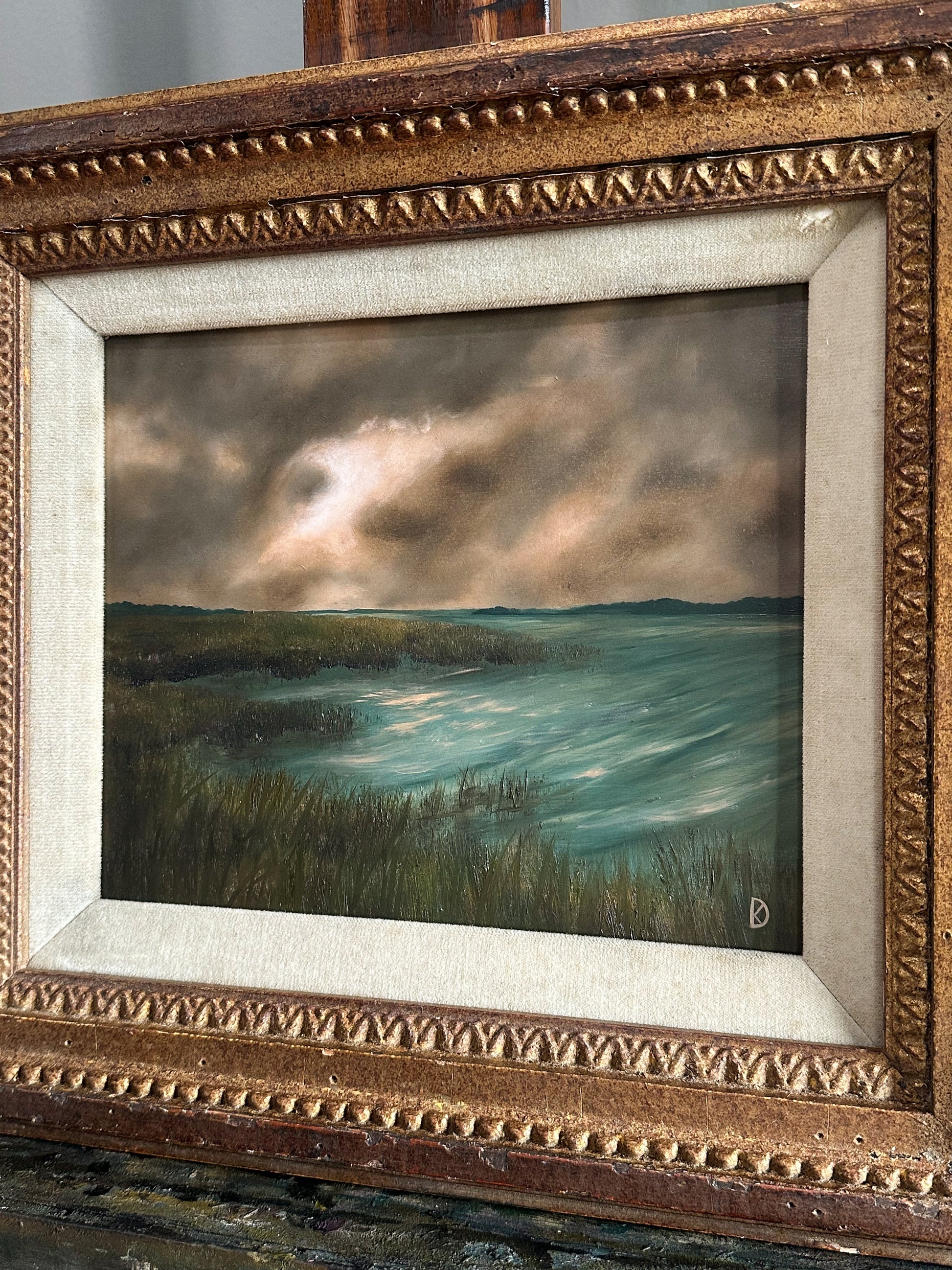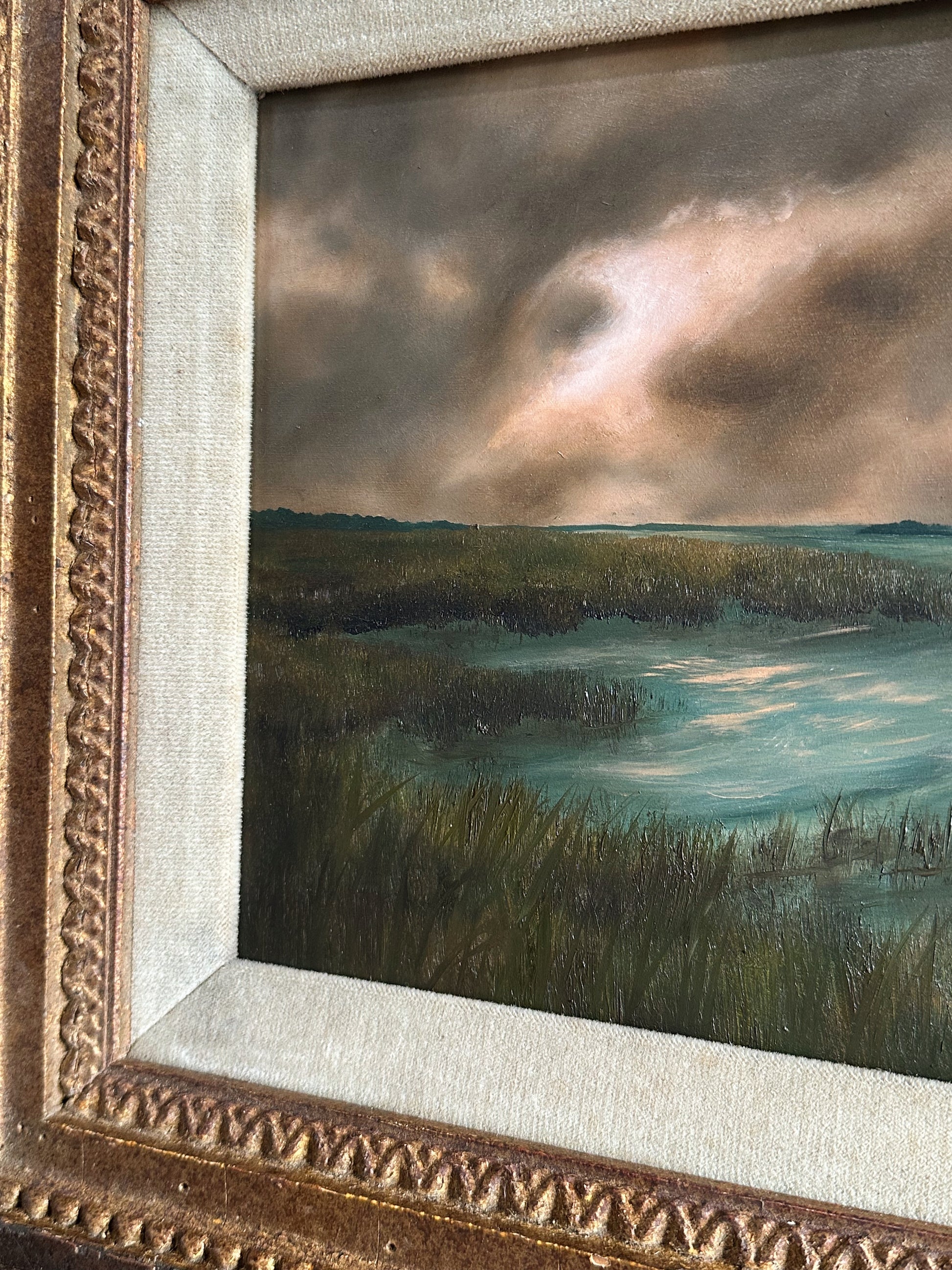A hazy storm lingers over a marsh. I hope this painting is a reminder to stand firm when storms waft in, as they never last and often produce knowledge we wouldn't have gained otherwise.