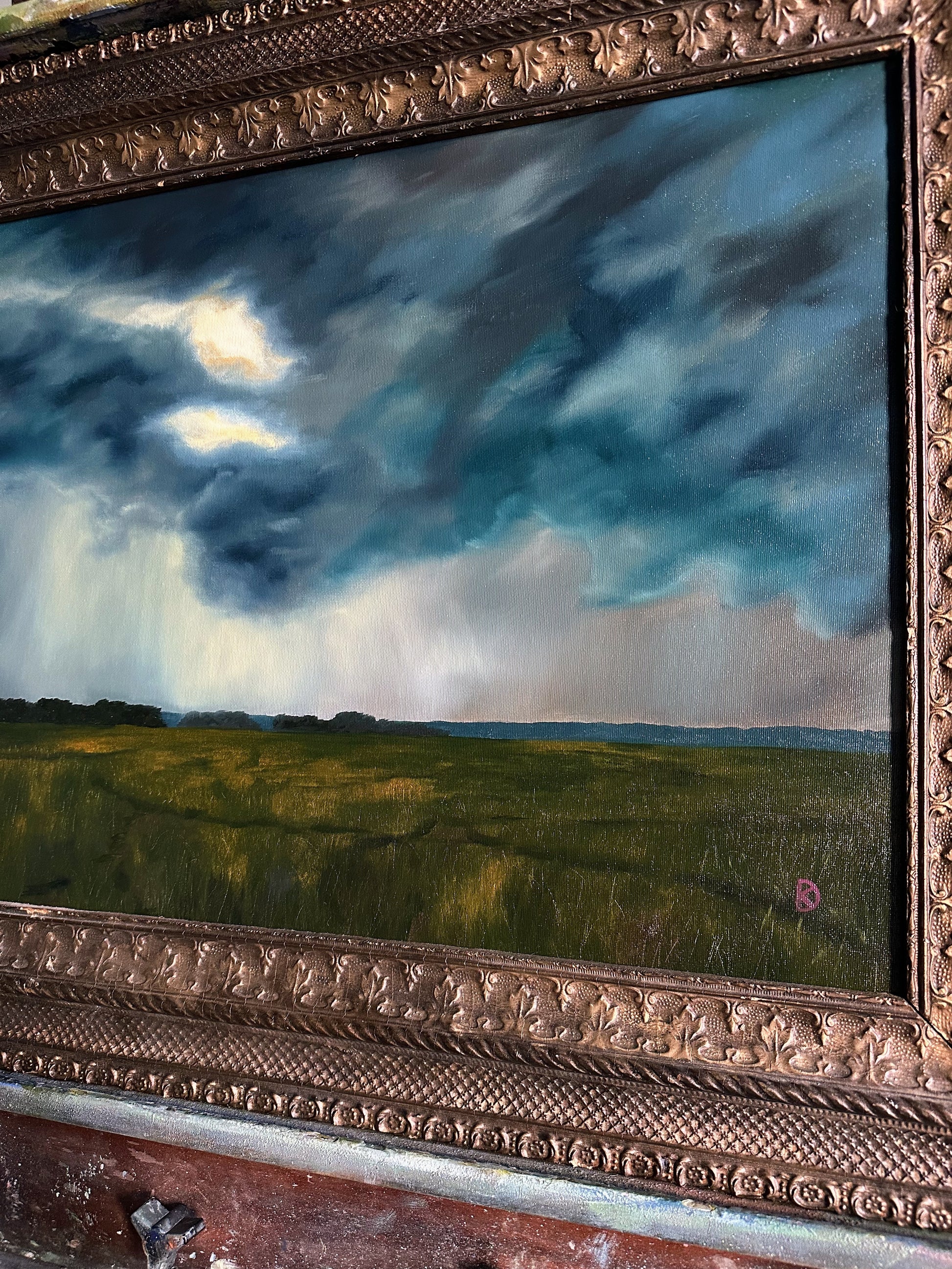 This is another scene I created from a place of grief. I liked how the coloring and break in the clouds seemed to mimic the word from the poem I chose to focus on while painting: “Pause.”