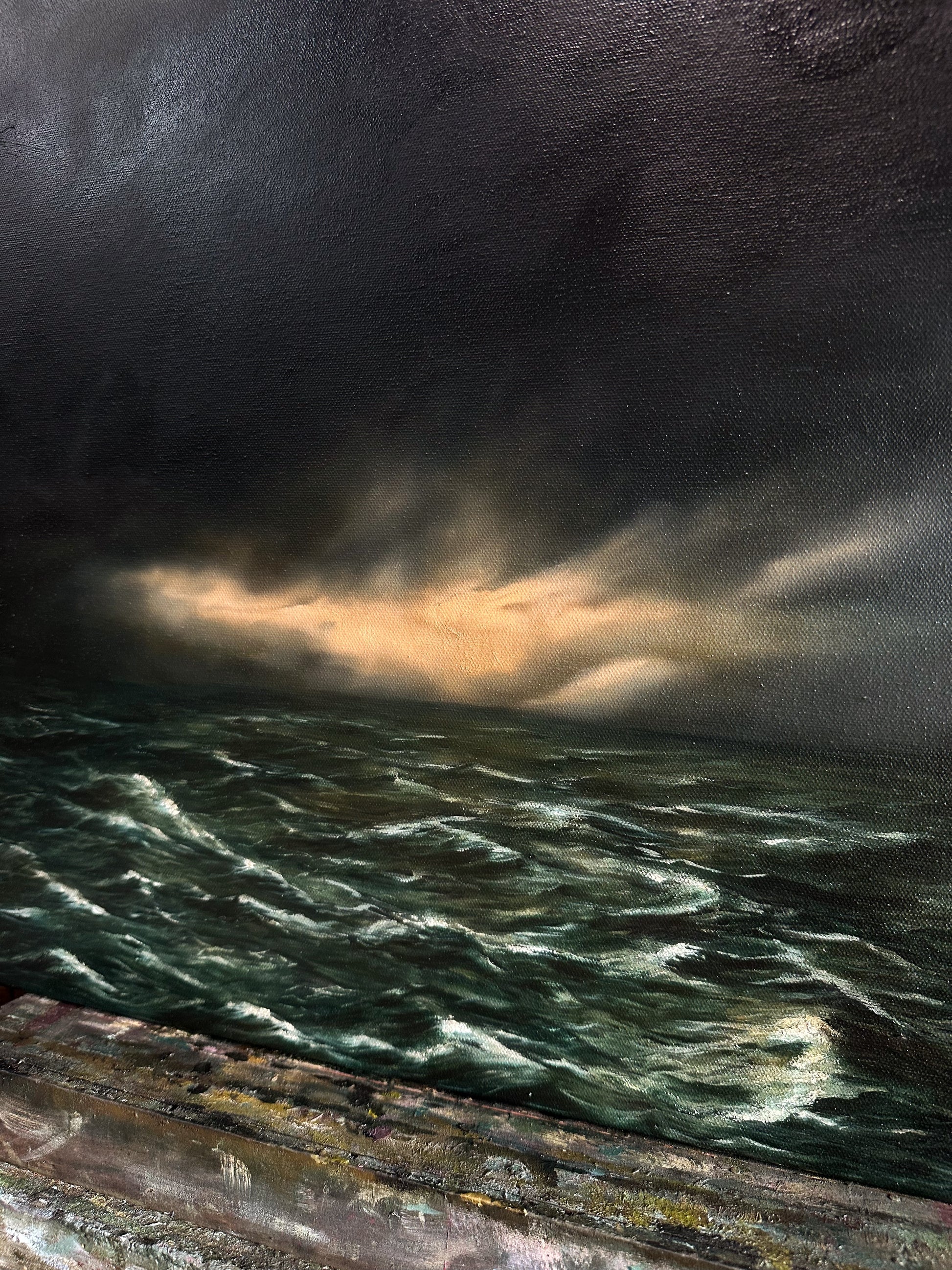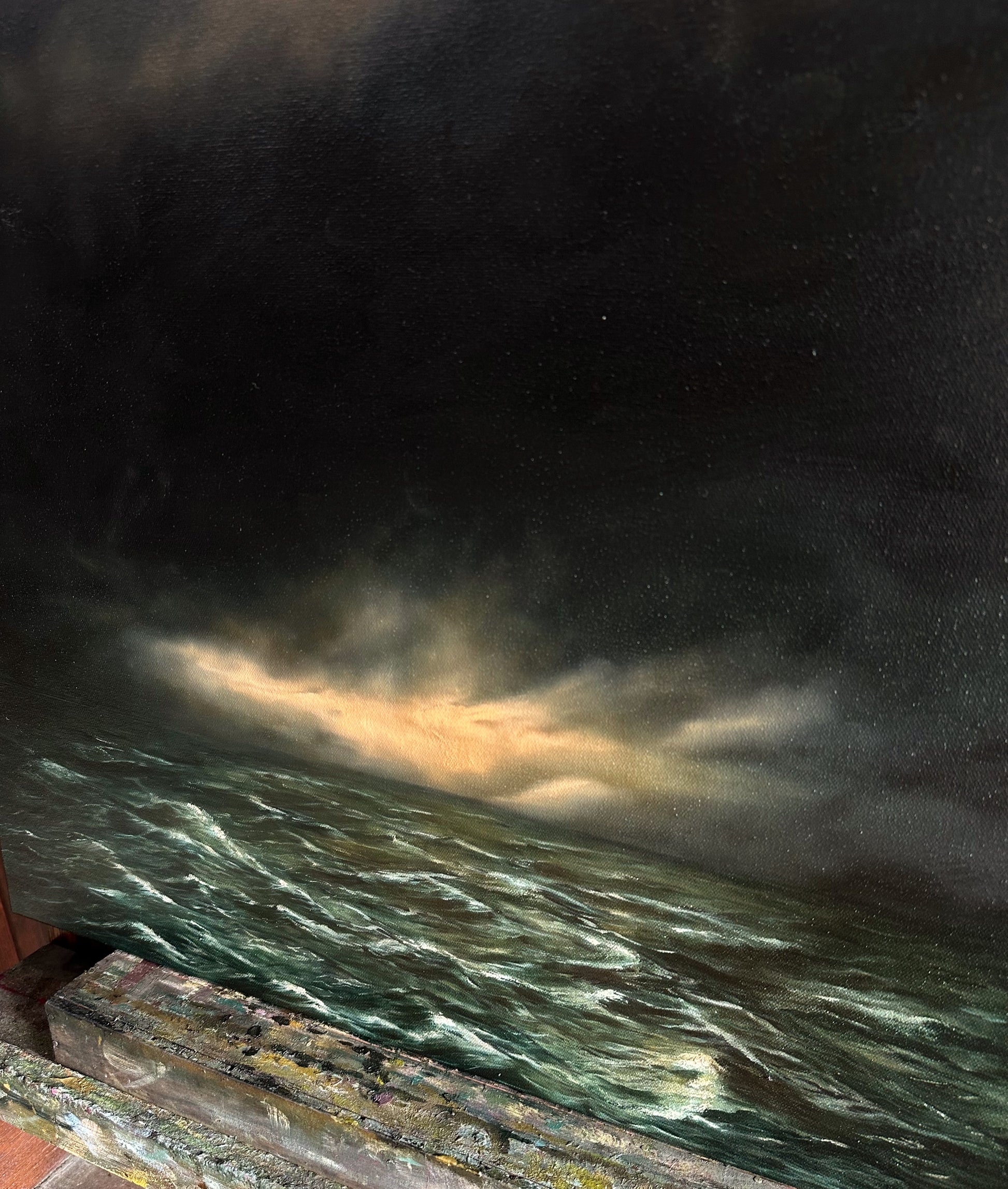 I created this scene as a metaphorical depiction of rebirth and finding one's new path after heartache, grief or trauma. The ocean is very detailed and tumultuous under the twinkling stars and vivid light. I hope it reminds you of the beauty that can still come to you after a lifetime of trauma.