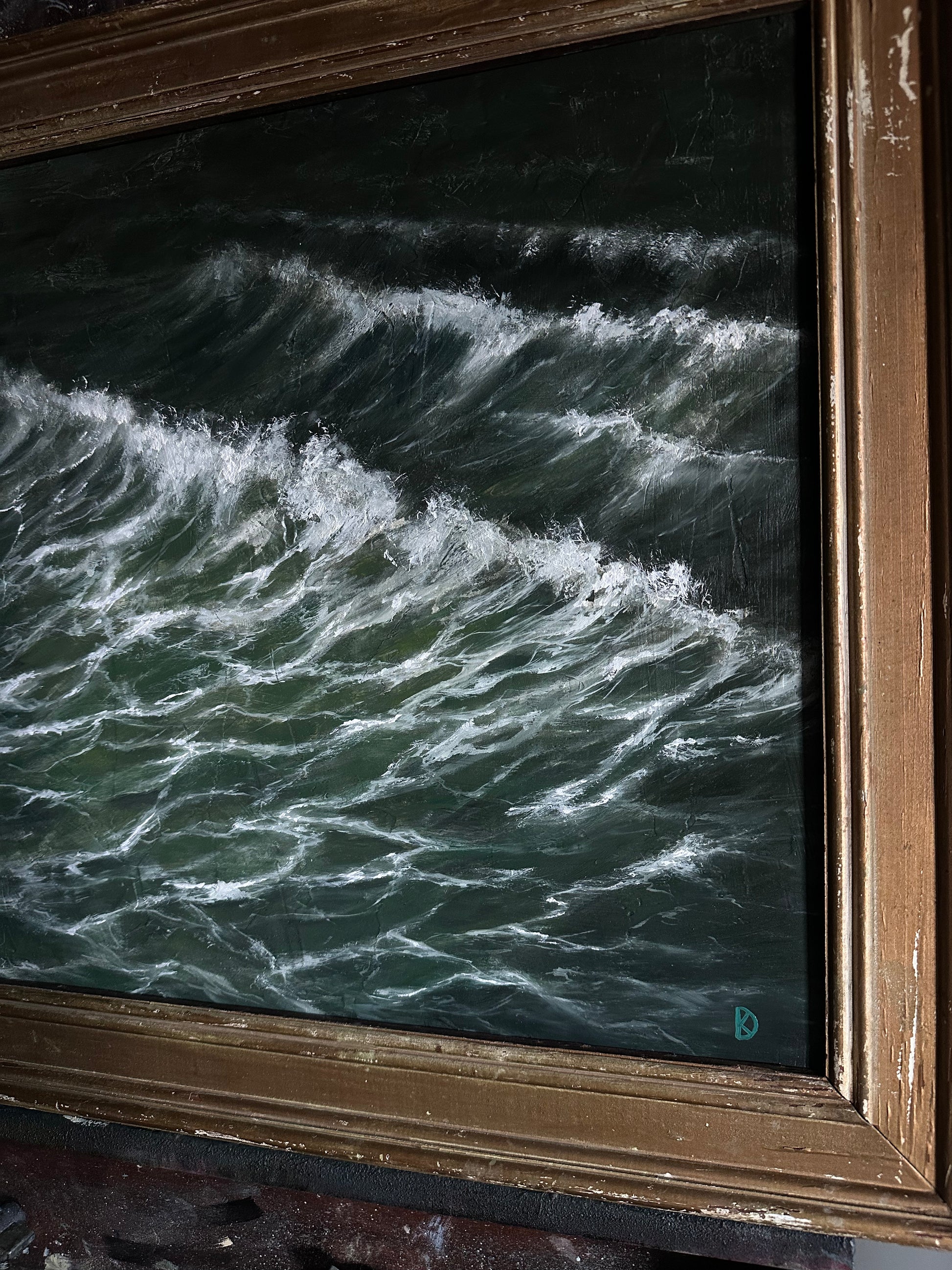 "Returns” Oil Painting in Antique Frame - 25.5" x 19.5"