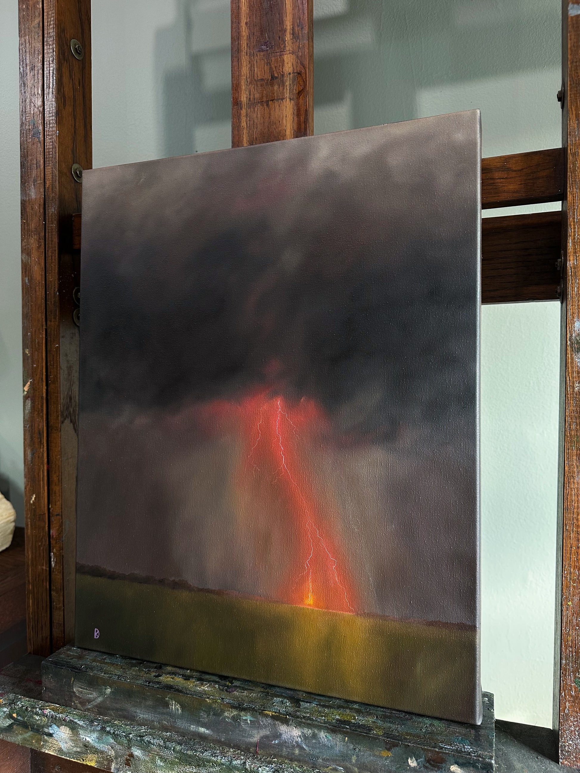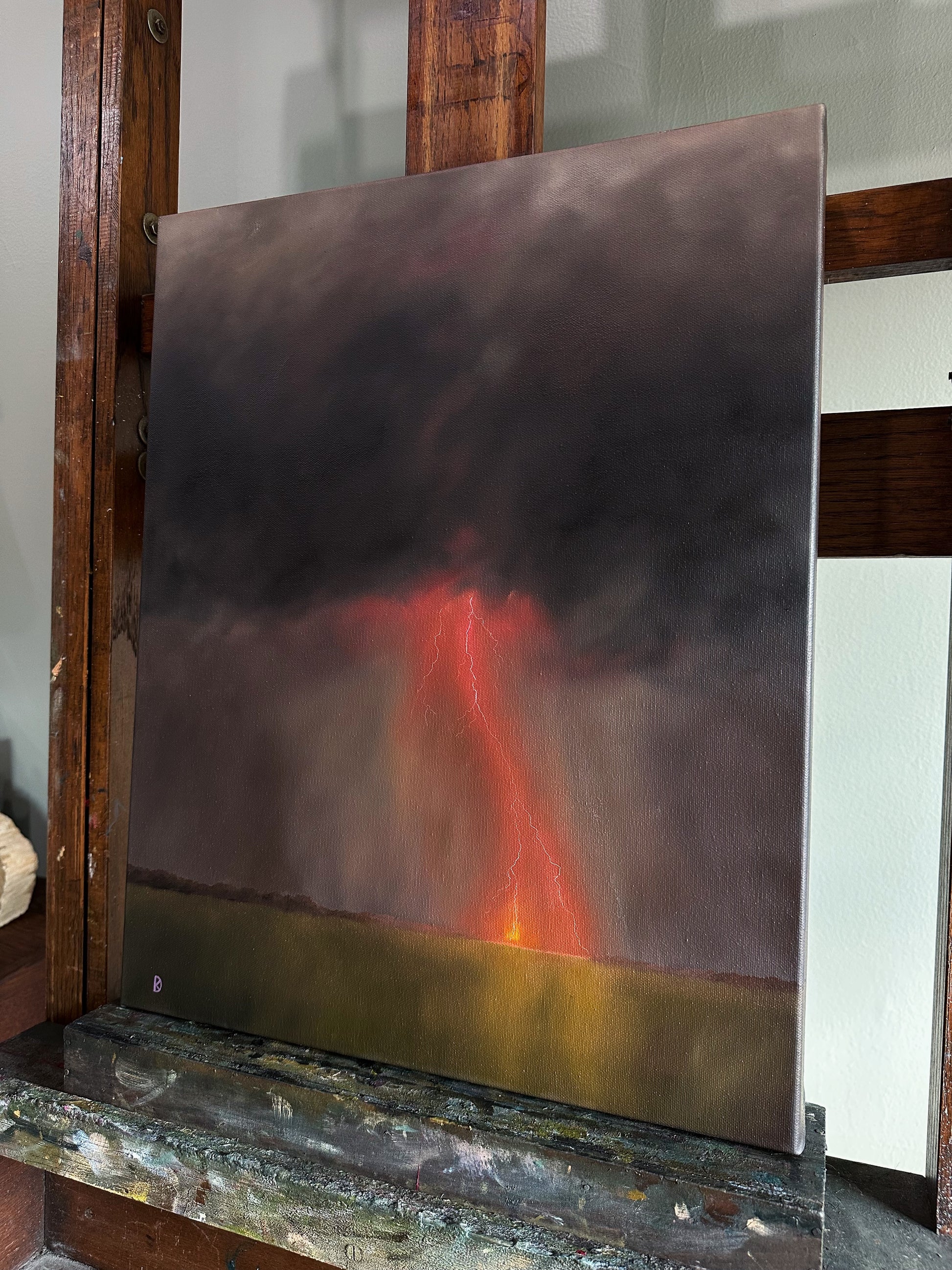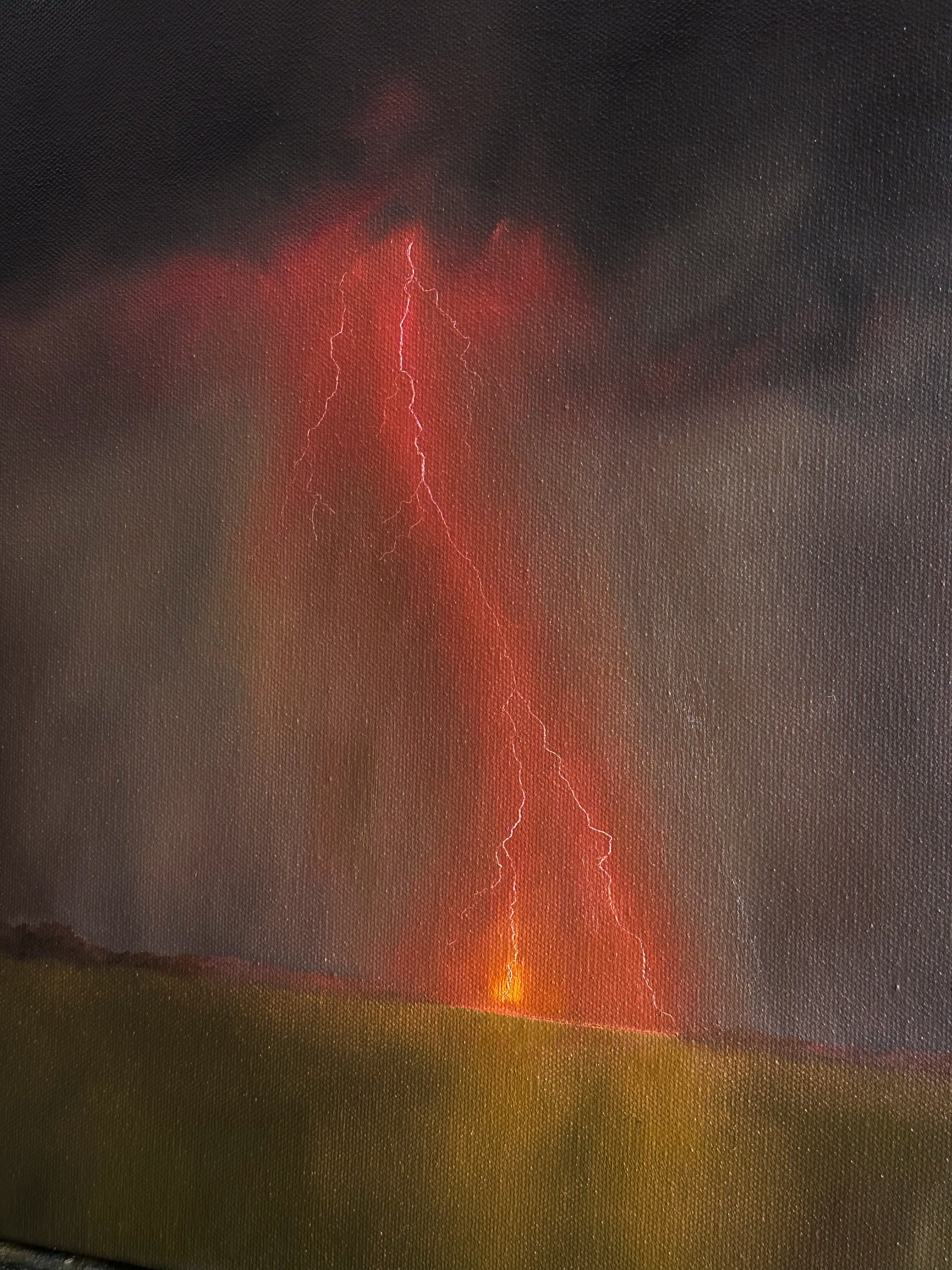I don't usually create multiples of one image, as I think it can water-down the sentiment, but it felt pertinent that I create multiples of these; I just couldn't stop painting them. It felt like they were flowing out of my fingertips. While I've attempted, and failed, to portray lightning dozens of times, I feel I got it right with these: white hot strikes. And pink! Making the storms in dusty purples and magenta pink was symbolic, and very intentional. I want my collectors to see this image and feel the connection to other like-minded women. We're all on the same side, after all- the right one.