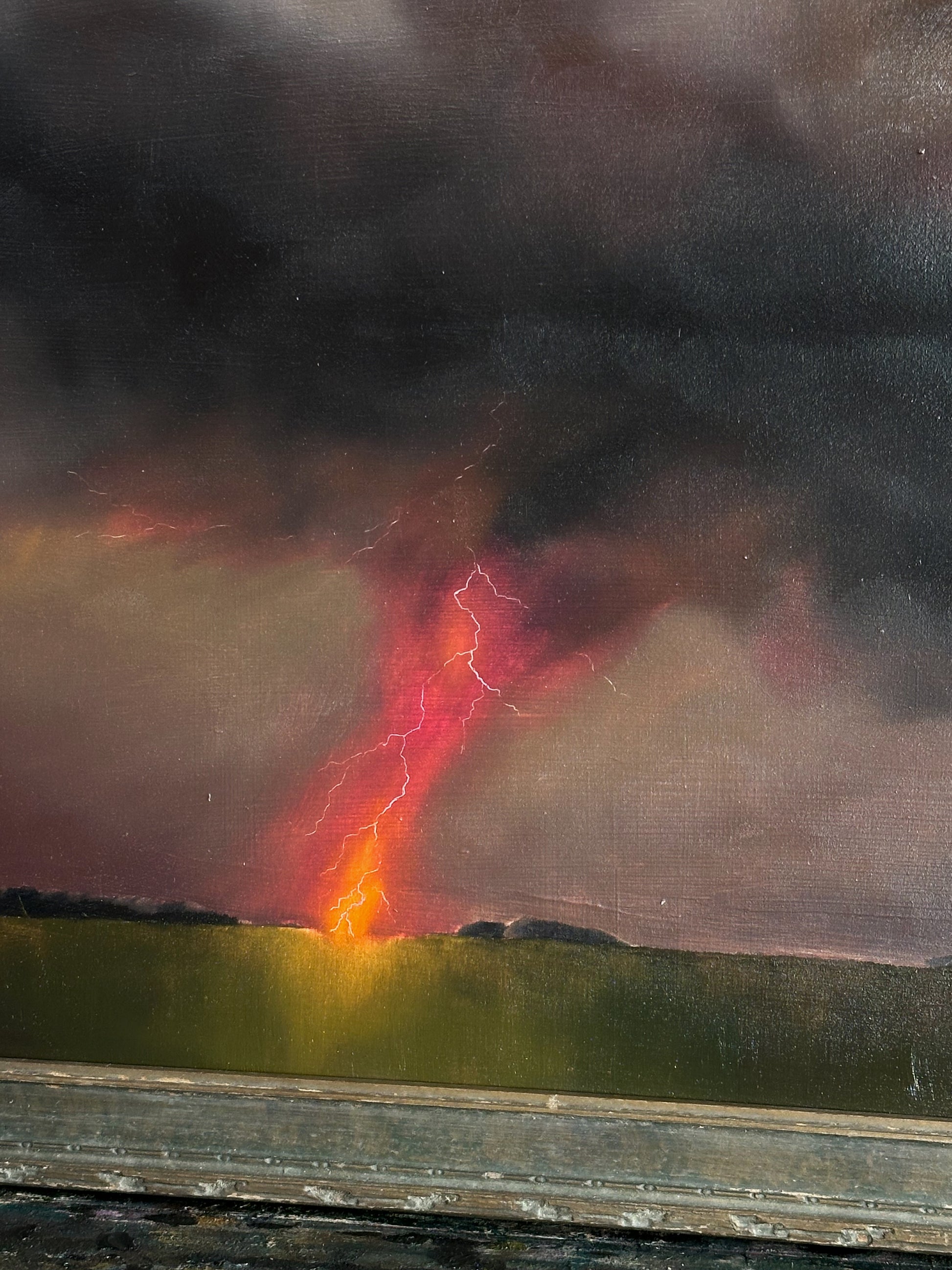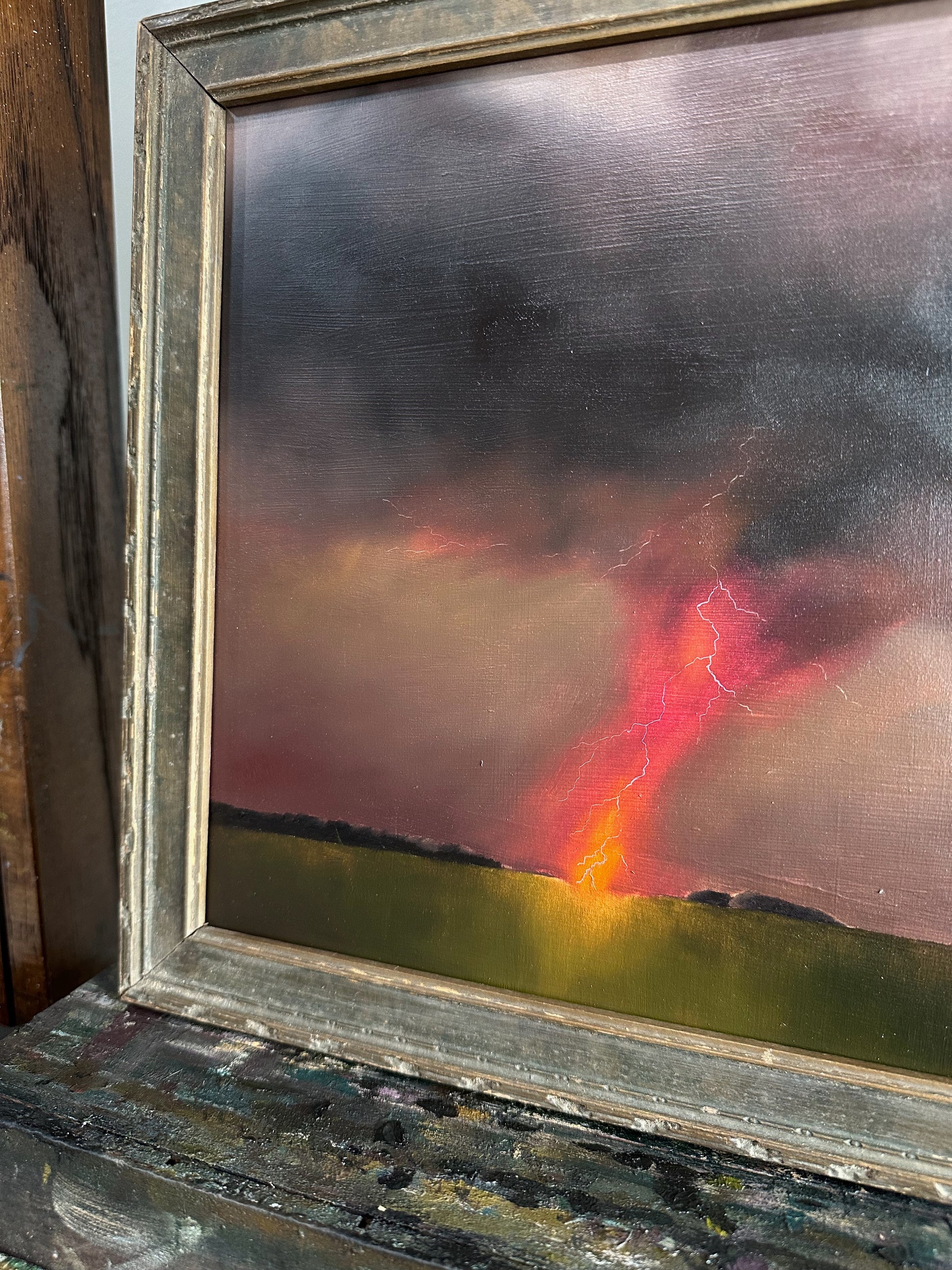 I don't usually create multiples of one image, as I think it can water-down the sentiment, but it felt pertinent that I create multiples of these; I just couldn't stop painting them. It felt like they were flowing out of my fingertips. While I've attempted, and failed, to portray lightning dozens of times, I feel I got it right with these: white hot strikes. And pink! Making the storms in dusty purples and magenta pink was symbolic, and very intentional. I want my collectors to see this image and feel the connection to other like-minded women. We're all on the same side, after all- the right one.