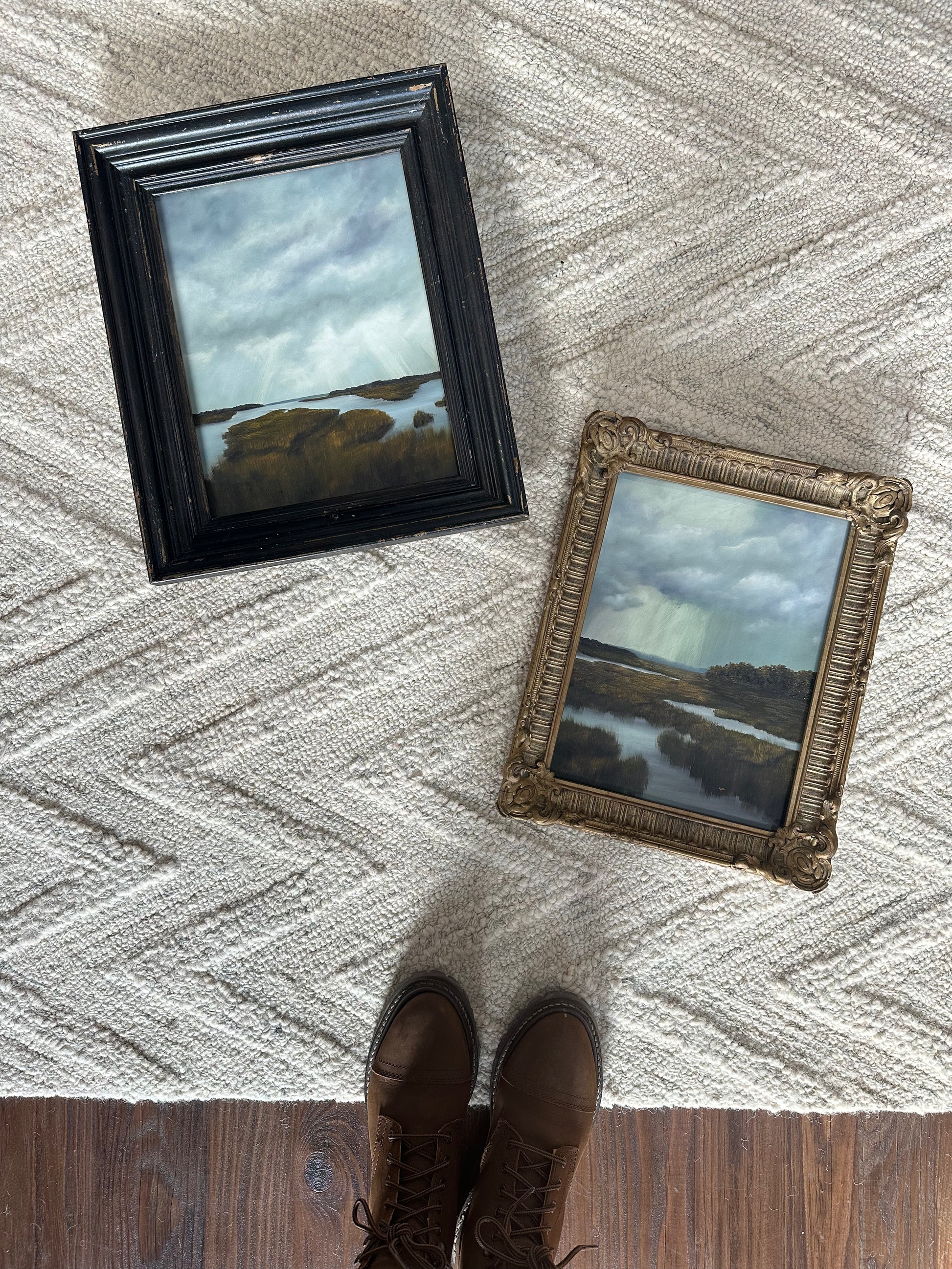 Chosen prices are a direct correlation of time spent creating. Some paintings take 10 hours and some take several months of 60+ hours of work plus dry times between layers. The value, rarity and ornateness of each frame (or lack thereof) is also taken into account.