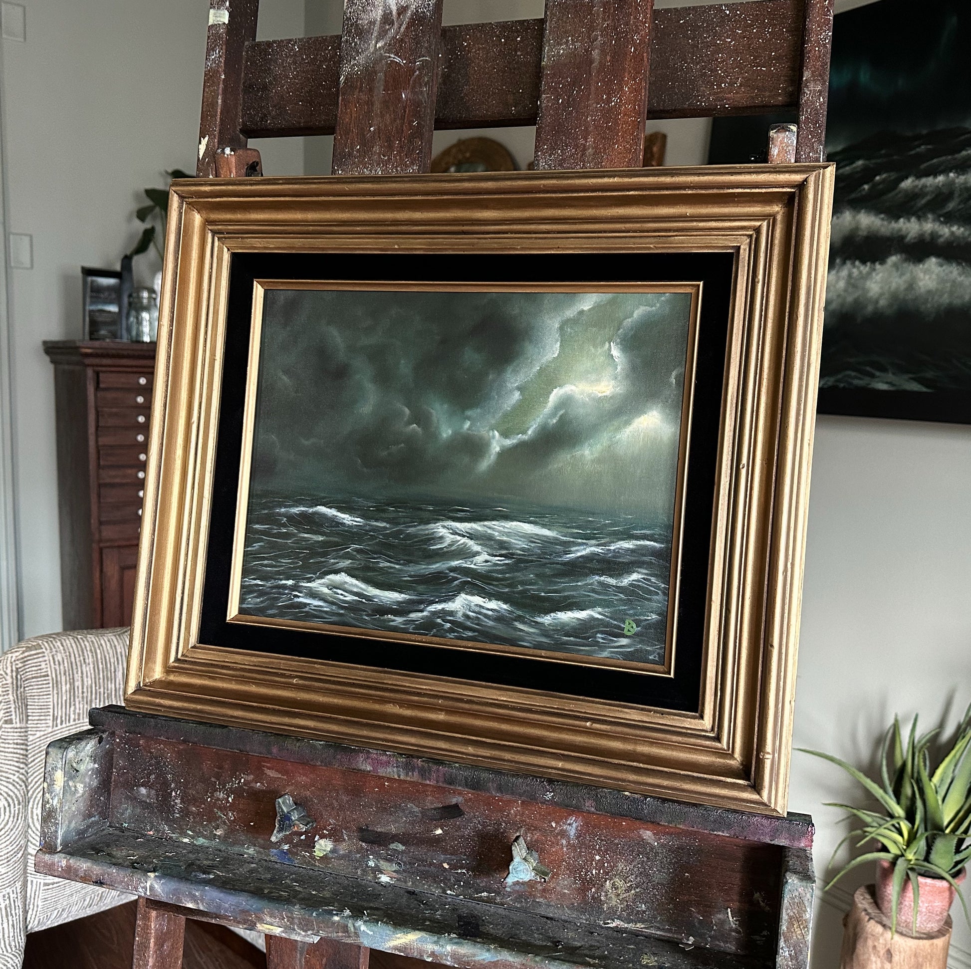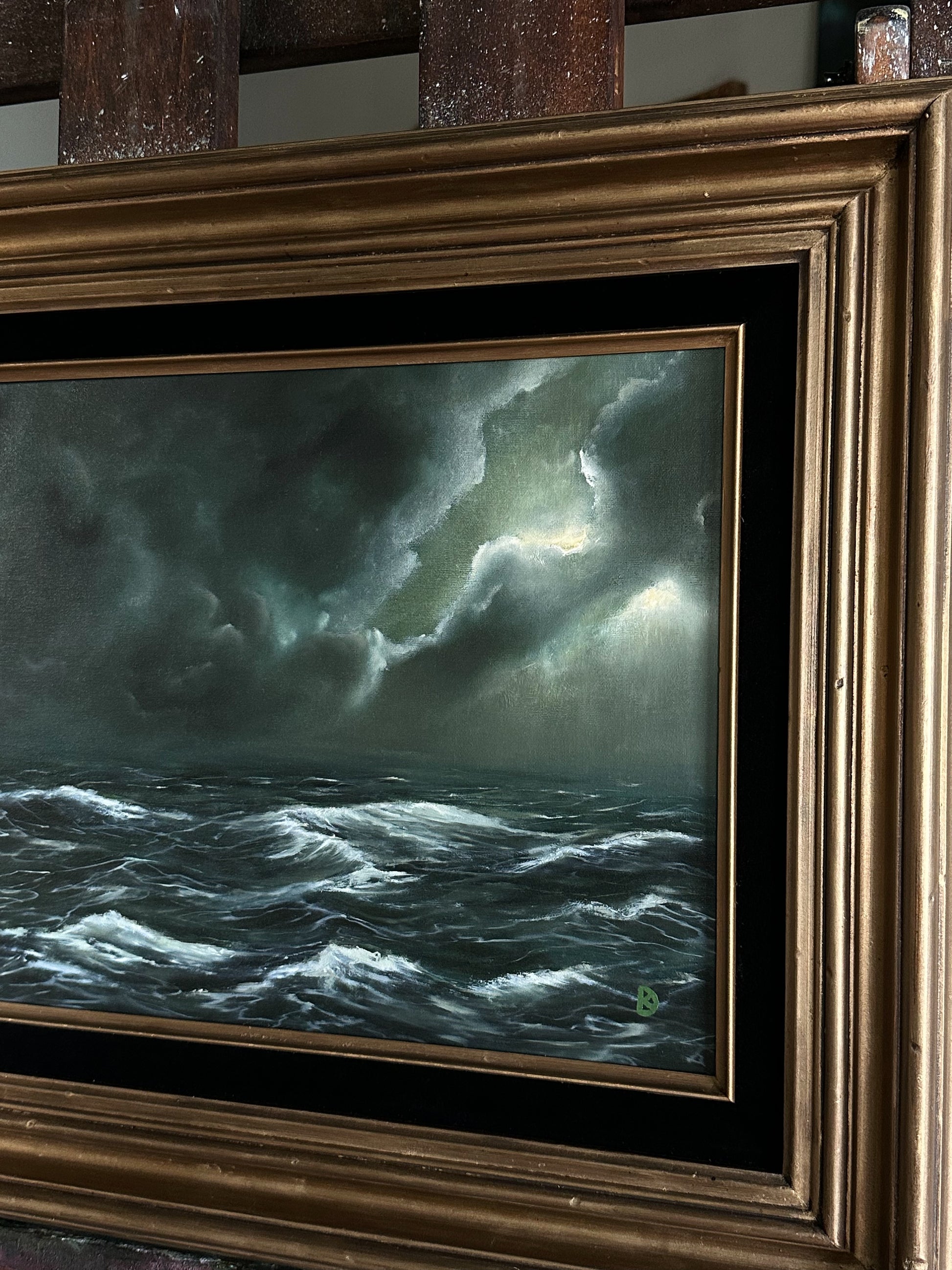 “Sink or Swim III” Oil Painting in Vintage Frame - 20.5" x 17.5"