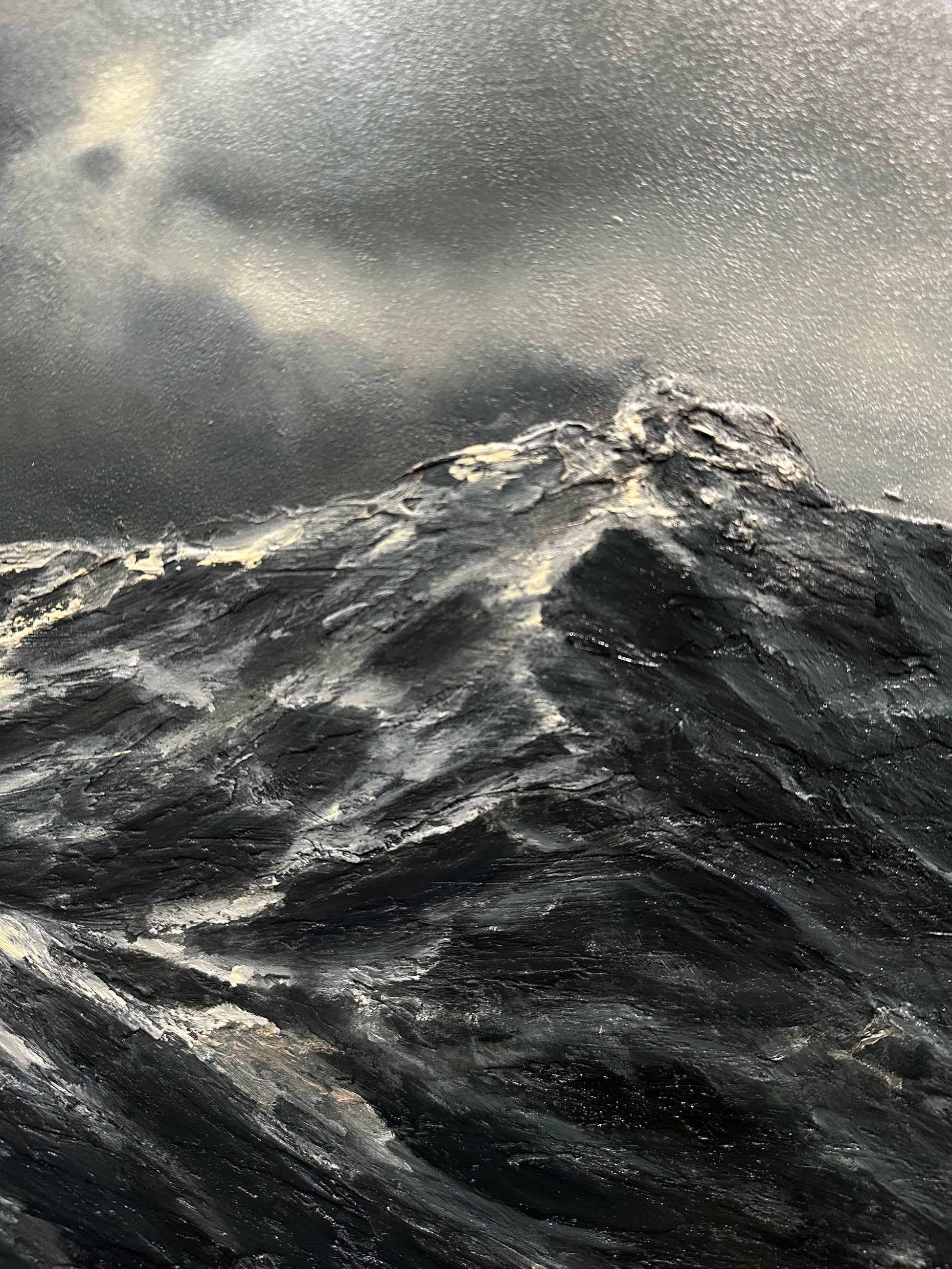 Painted/named from a quote by Chidi on The Good Place that outlines the Buddhist's view on death and life. It has become my favorite and most peaceful way of thinking about grief. This painting was sculpted first, then painted in oil paints, so there is much texture built up.