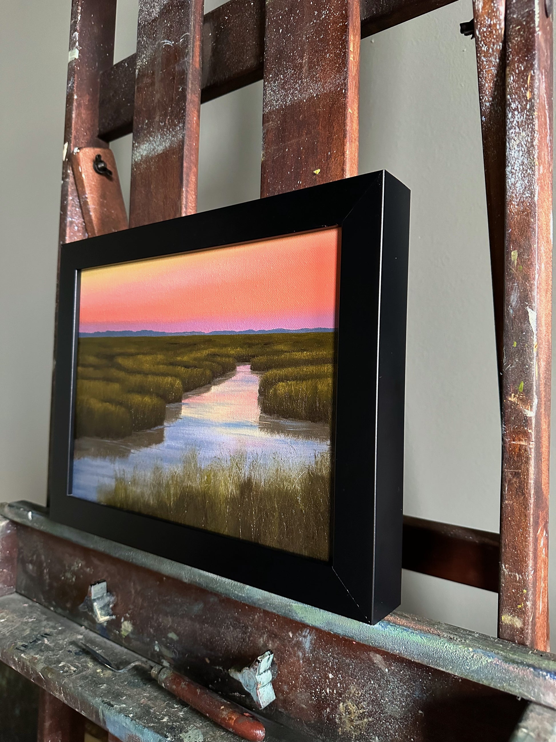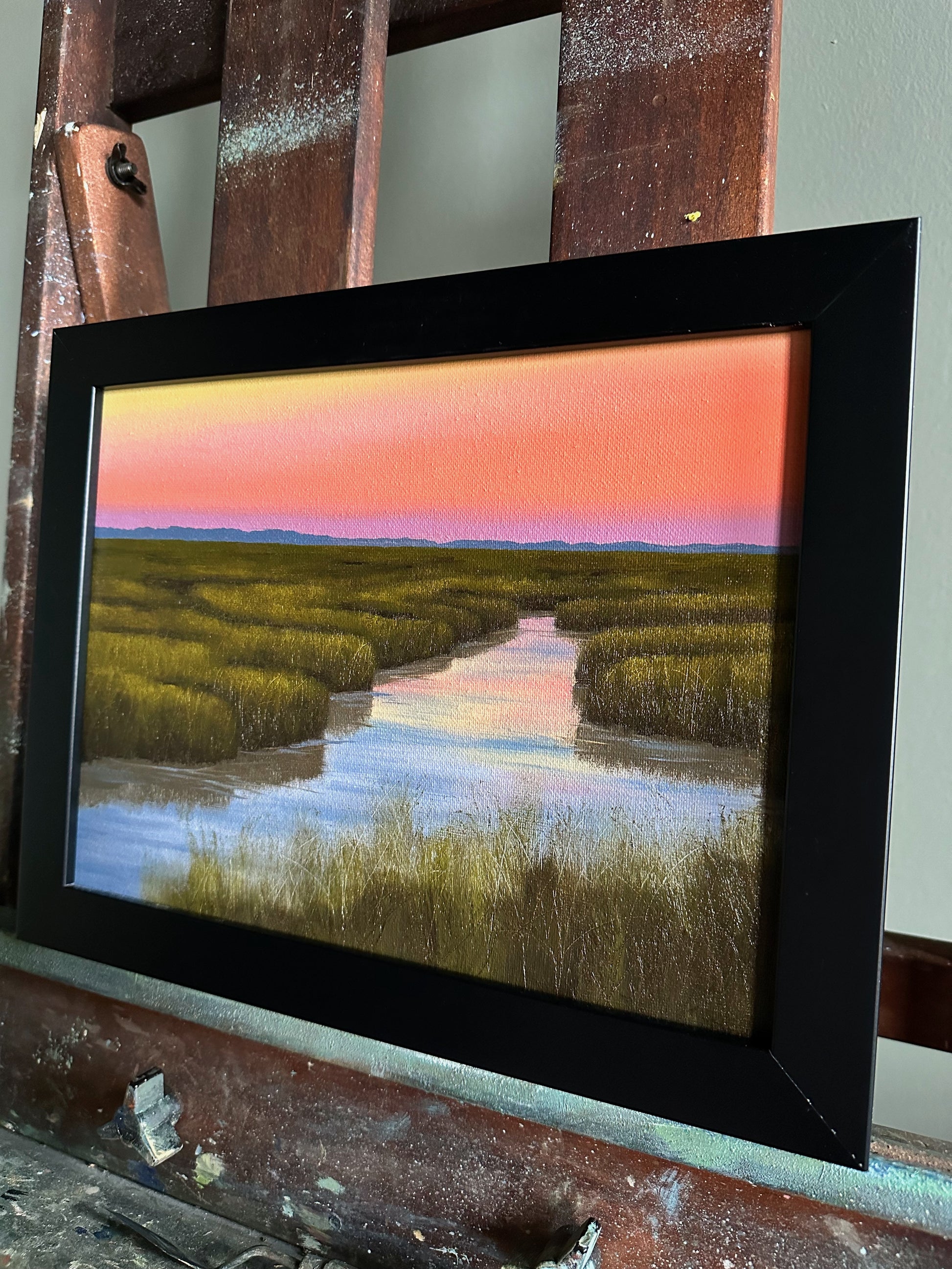 Chosen prices are a direct correlation of time spent creating. Some paintings take 10 hours and some take several months of 60+ hours of work plus dry times between layers. The value, rarity and ornateness of each frame (or lack thereof) is also taken into account.