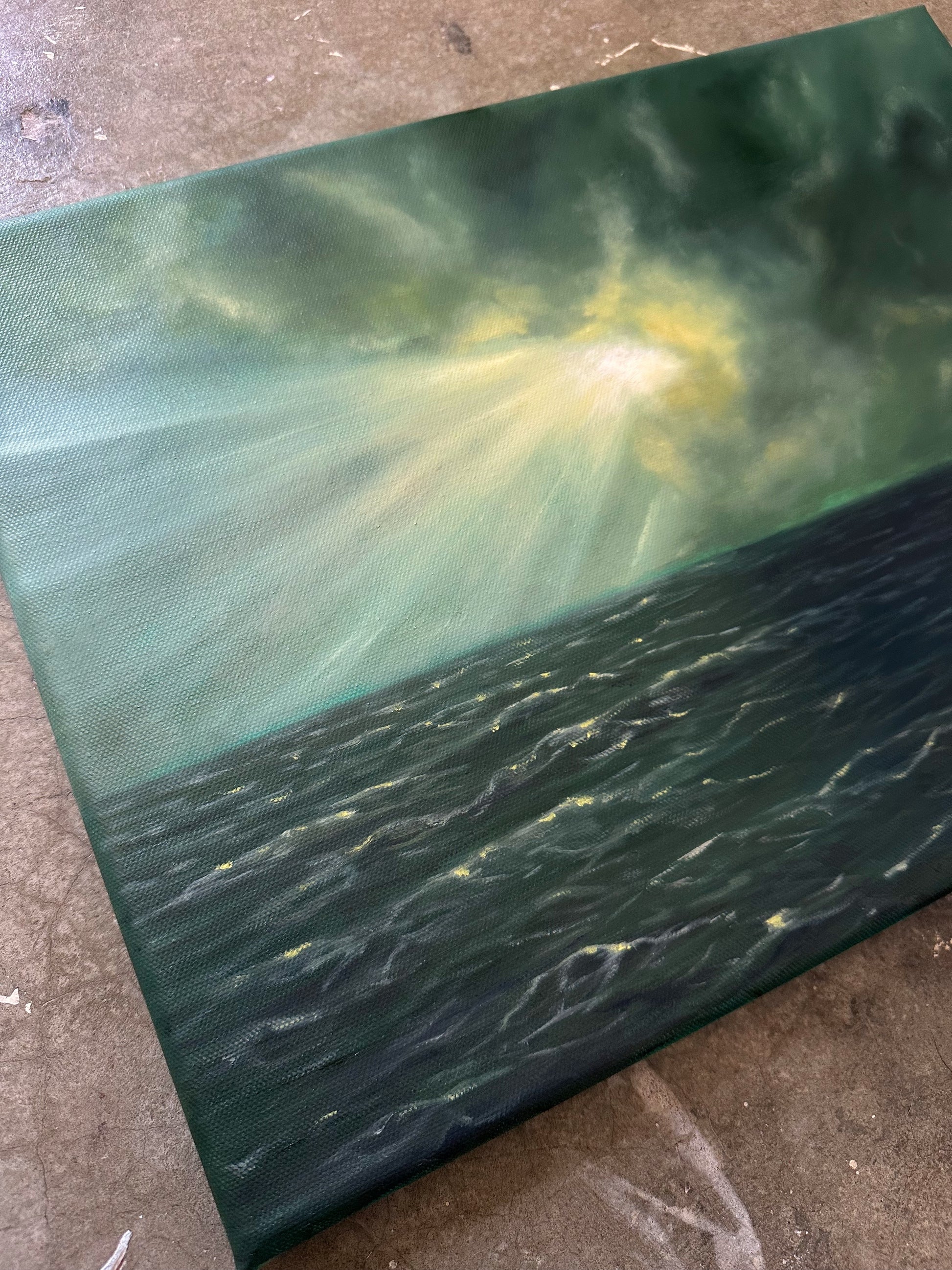 Oil on canvas. 16" x 12" unframed with painted sides, ready to hang or be framed.