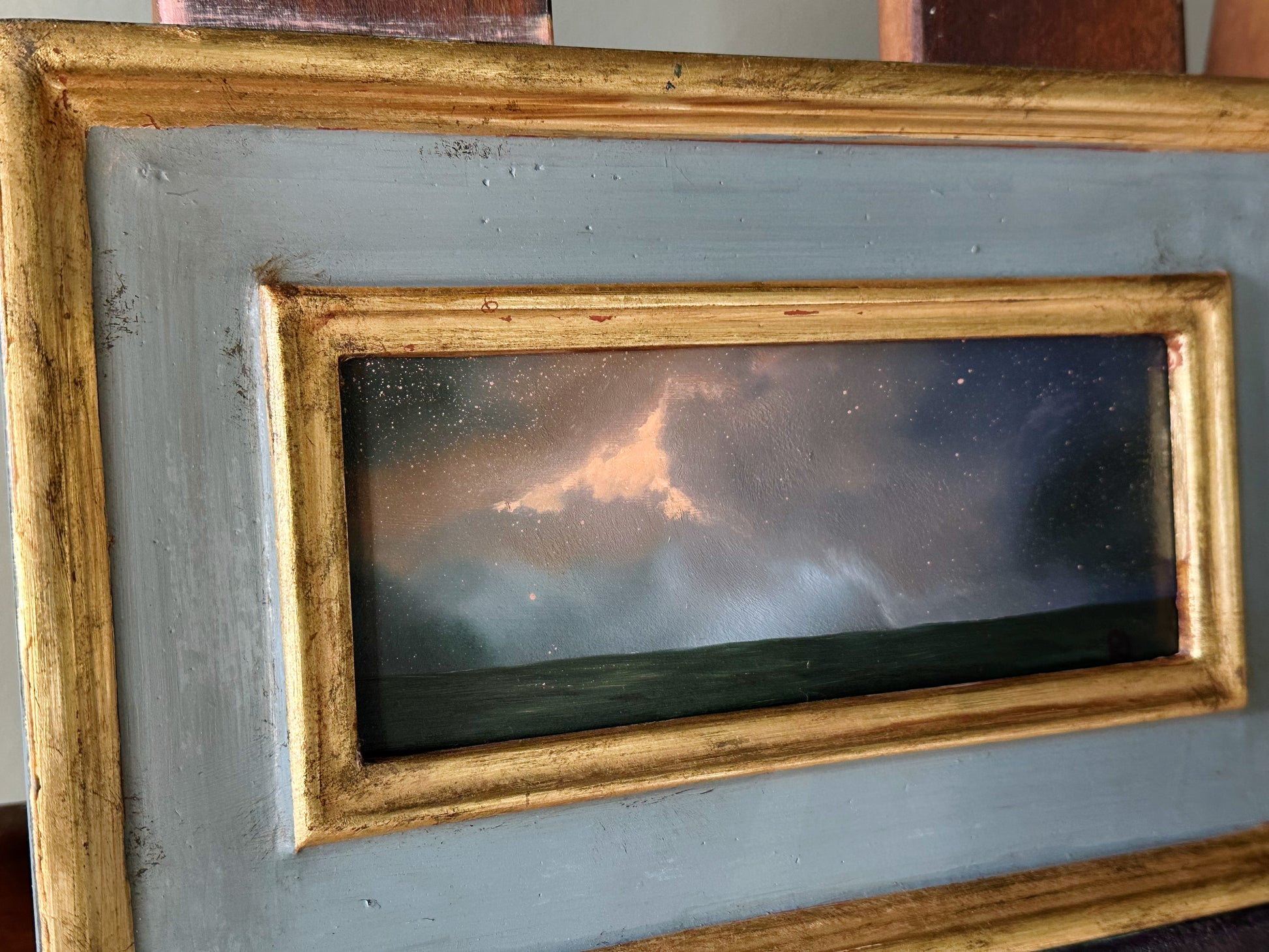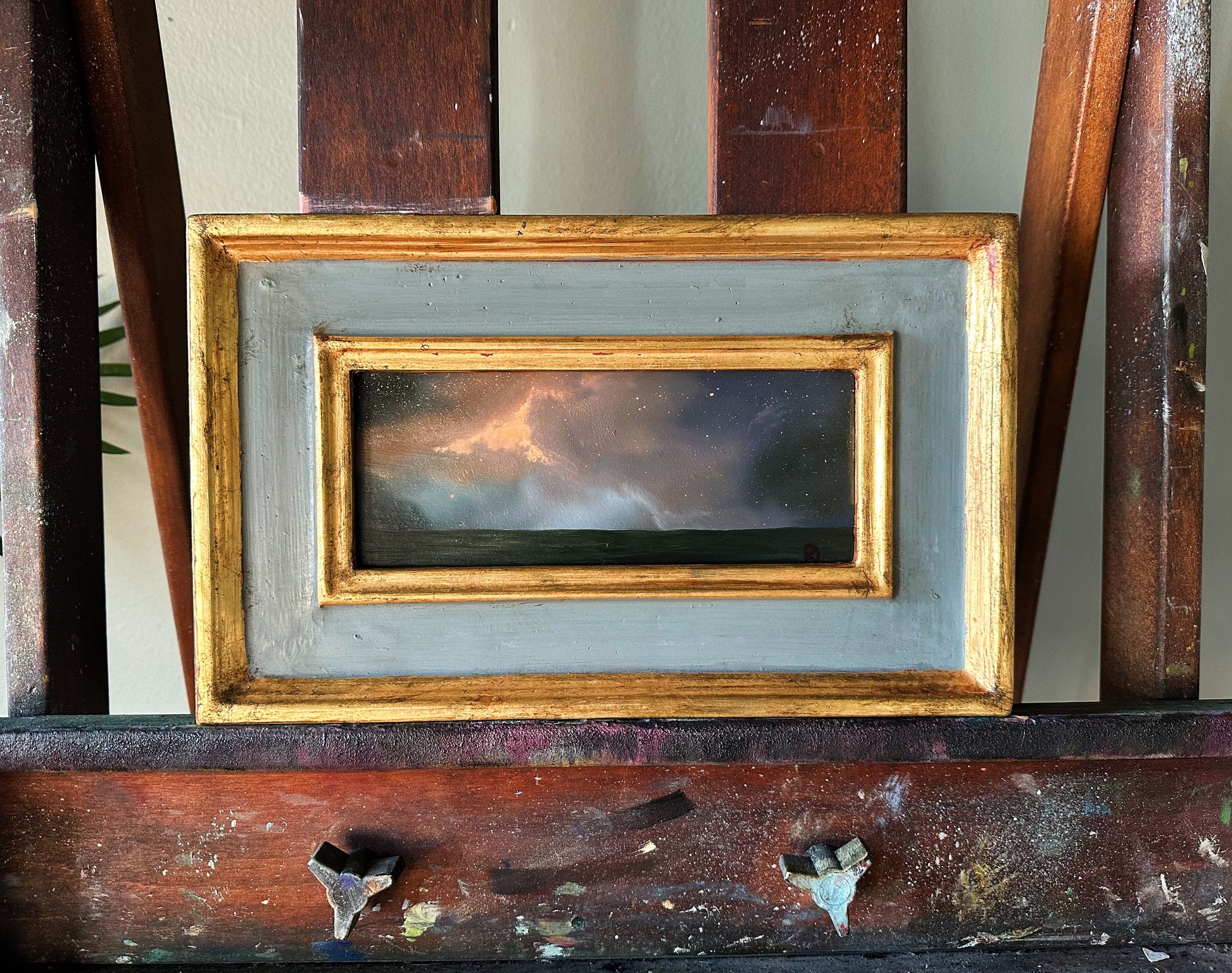 In September, I was fortunate to visit Italy to teach oil painting. I stayed in Venice and fell in love with that gorgeous place. Moreso, I fell in love with the many generational artisans and crafters. I stumbled into a tiny little frame shop and quickly made friends with the kind owner and maker, Alberto. He has made frames his whole life, and took over the family business from his father, who had taken it over from his grandfather. While Alberto was low in stock, he graciously allowed me to pick out a stack of unfinished frames so that he could finish them to my specifications that would best suit my art. This experience felt so full-circle because I am Italian, and I grew up in poverty; I certainly never thought I'd get to visit the country my great-grandparents came from. To have these special frames as part of this collection of "Whisper to Me" paintings just felt 'right.'