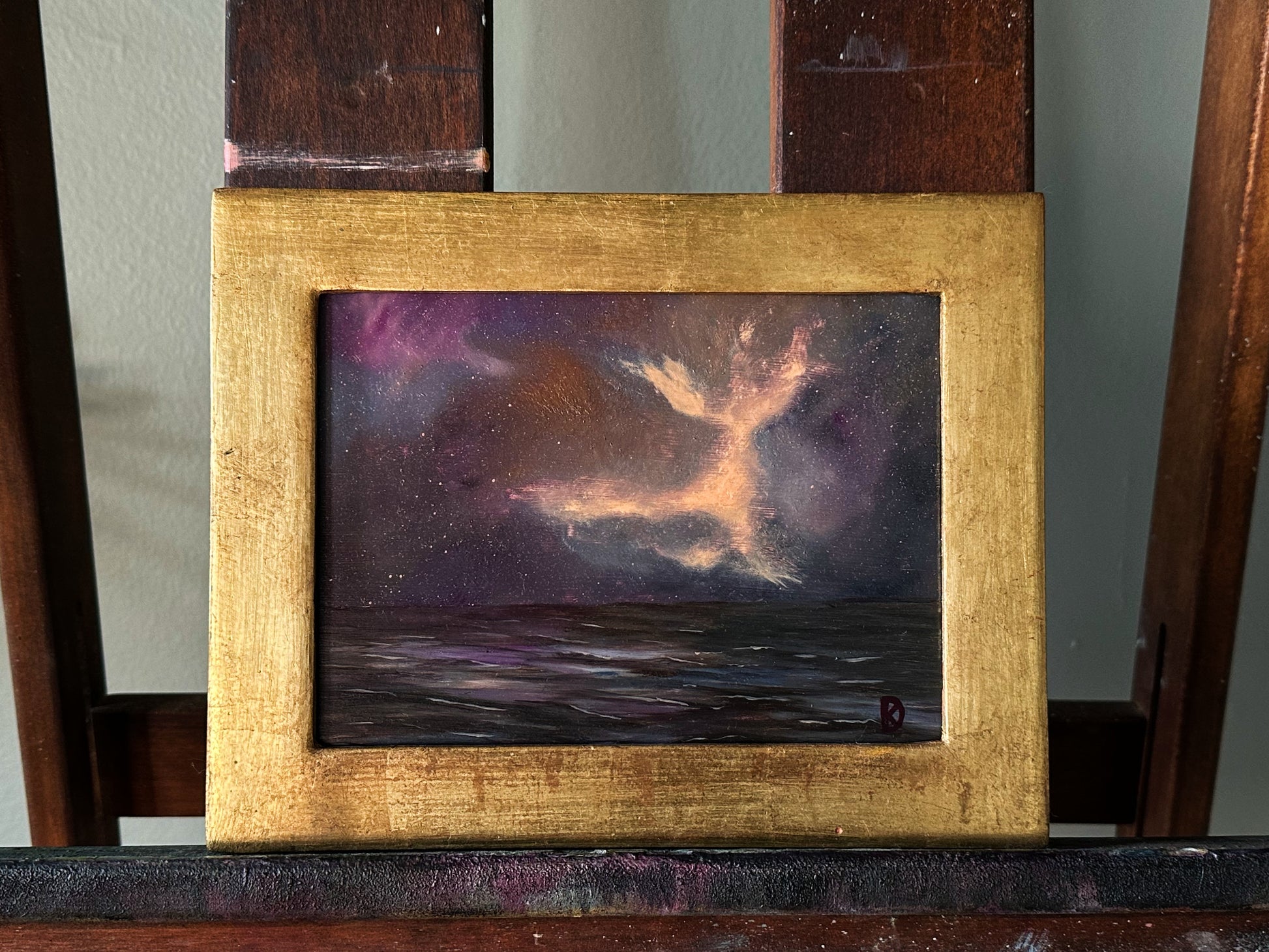 In September, I was fortunate to visit Italy to teach oil painting. I stayed in Venice and fell in love with that gorgeous place. Moreso, I fell in love with the many generational artisans and crafters. I stumbled into a tiny little frame shop and quickly made friends with the kind owner and maker, Alberto. He has made frames his whole life, and took over the family business from his father, who had taken it over from his grandfather. While Alberto was low in stock, he graciously allowed me to pick out a stack of unfinished frames so that he could finish them to my specifications that would best suit my art. This experience felt so full-circle because I am Italian, and I grew up in poverty; I certainly never thought I'd get to visit the country my great-grandparents came from. To have these special frames as part of this collection of "Whisper to Me" paintings just felt 'right.'