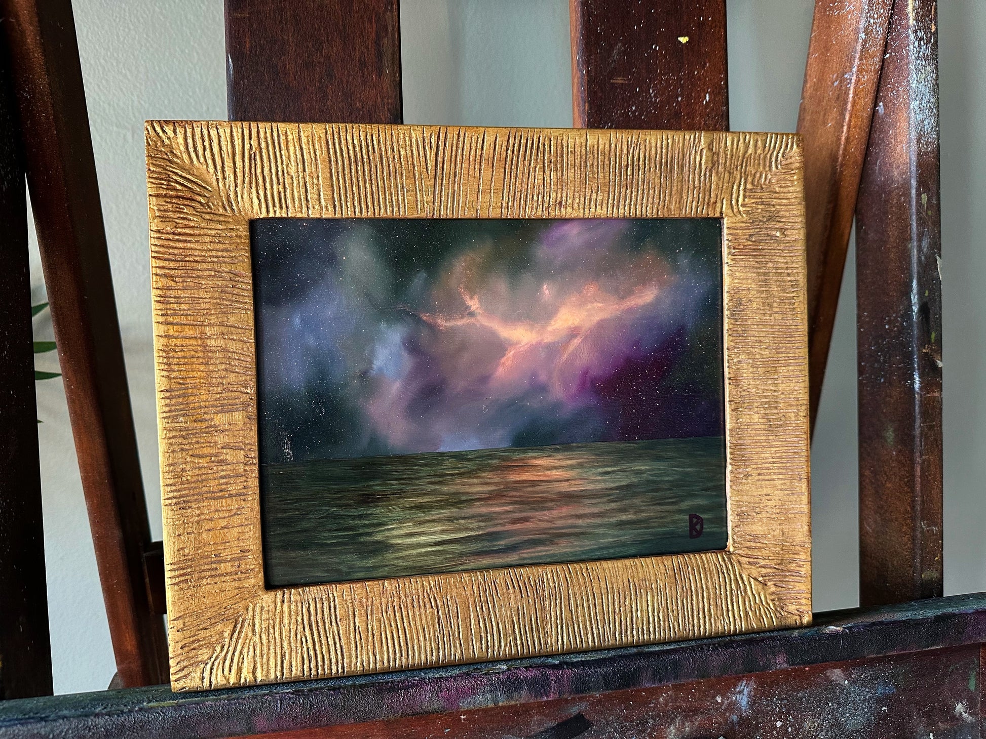 In September, I was fortunate to visit Italy to teach oil painting. I stayed in Venice and fell in love with that gorgeous place. Moreso, I fell in love with the many generational artisans and crafters. I stumbled into a tiny little frame shop and quickly made friends with the kind owner and maker, Alberto. He has made frames his whole life, and took over the family business from his father, who had taken it over from his grandfather. While Alberto was low in stock, he graciously allowed me to pick out a stack of unfinished frames so that he could finish them to my specifications that would best suit my art. This experience felt so full-circle because I am Italian, and I grew up in poverty; I certainly never thought I'd get to visit the country my great-grandparents came from. To have these special frames as part of this collection of "Whisper to Me" paintings just felt 'right.'