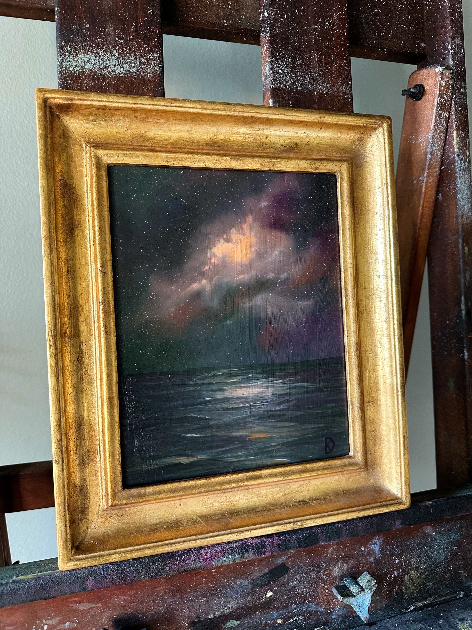 In September, I was fortunate to visit Italy to teach oil painting. I stayed in Venice and fell in love with that gorgeous place. Moreso, I fell in love with the many generational artisans and crafters. I stumbled into a tiny little frame shop and quickly made friends with the kind owner and maker, Alberto. He has made frames his whole life, and took over the family business from his father, who had taken it over from his grandfather. While Alberto was low in stock, he graciously allowed me to pick out a stack of unfinished frames so that he could finish them to my specifications that would best suit my art. This experience felt so full-circle because I am Italian, and I grew up in poverty; I certainly never thought I'd get to visit the country my great-grandparents came from. To have these special frames as part of this collection of "Whisper to Me" paintings just felt 'right.'